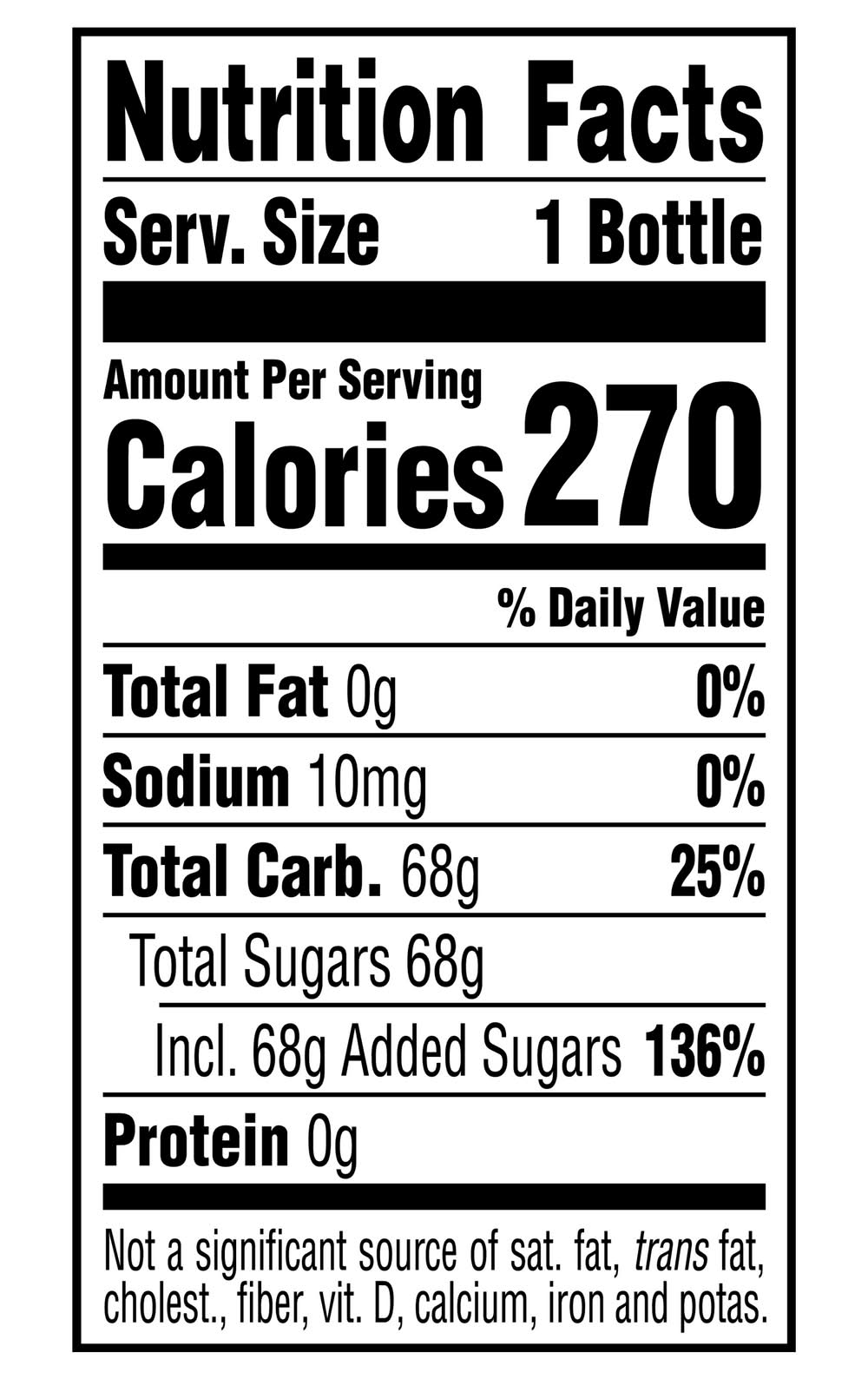 Ingredients: Ingredients: Brewed Tea (Filtered Water, Black Tea Leaves), Cane Sugar, Phosphoric Acid. Contains 4400mg of caffeine