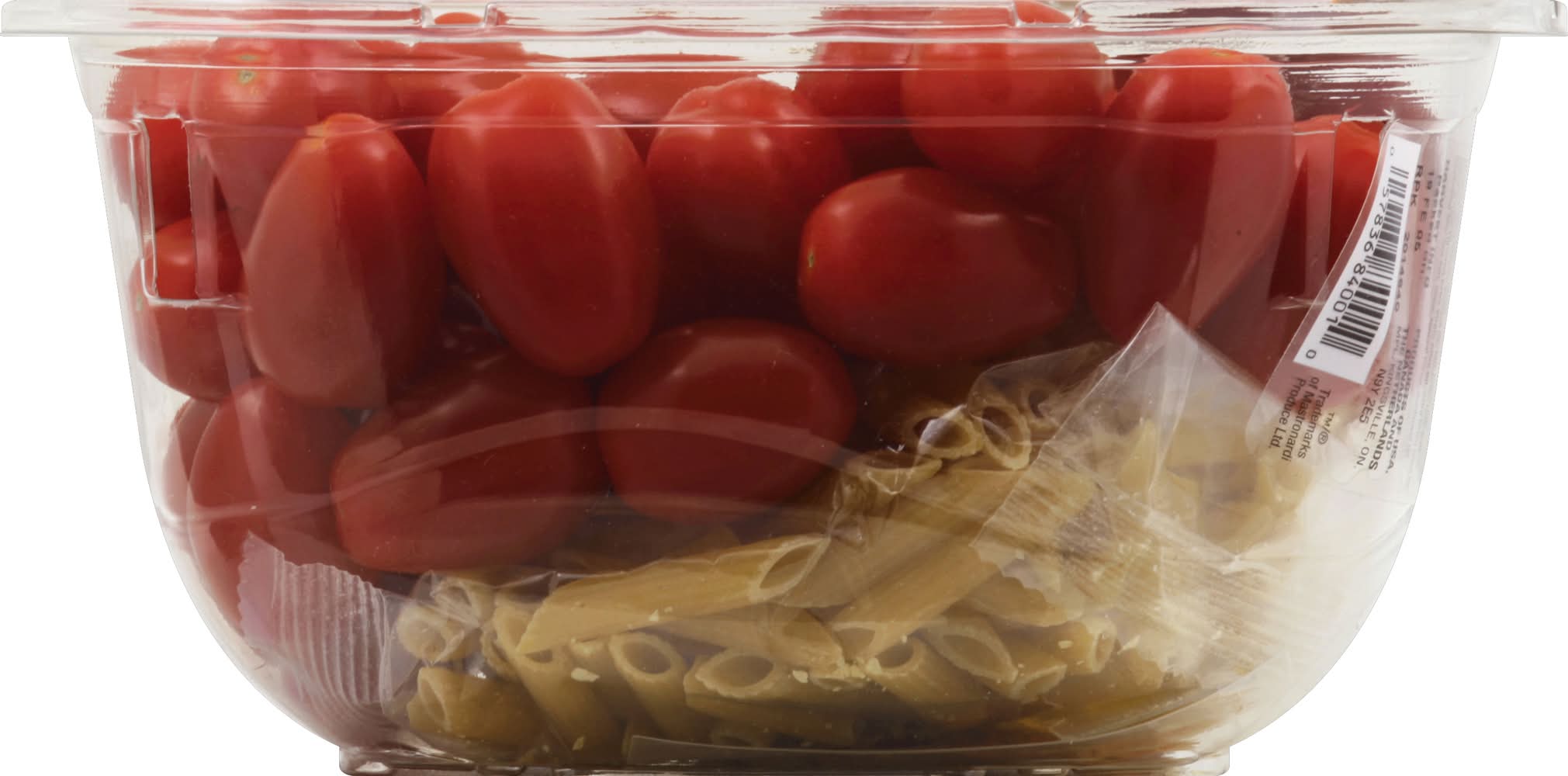 Tomatoes: Minzano Tomatoes. Enriched Penne Rigate: Semolina (Wheat), Niacin, Iron (Ferrous Sulfate), Thiamin Mononitrate, Riboflavin, Folic Acid. Garlic & Basil Flavored Extra Virgin Olive Oil: Extra Virgin Oil, Garlic Oil, Basil Oil. Seasoning Mix: Sea Salt, Spices, Natural Flavor, Sunflower Oil Contains: Wheat
