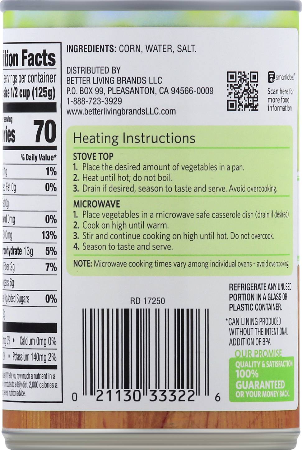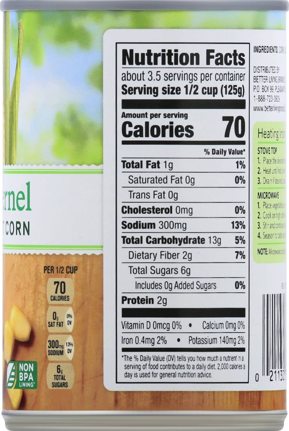 Corn, Golden Sweet, Whole Kernel BETTER LIVING BRANDS,