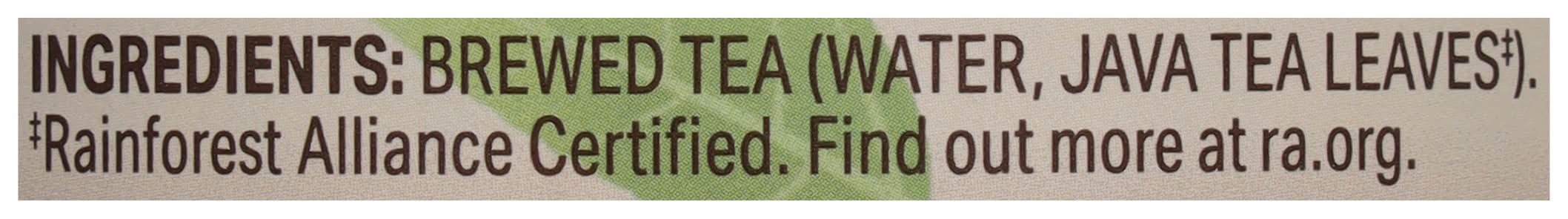 Brewed Tea (Water, Java Tea Leaves (a)). (a)Rainforest Alliance Certified. Find Out More at ra.org