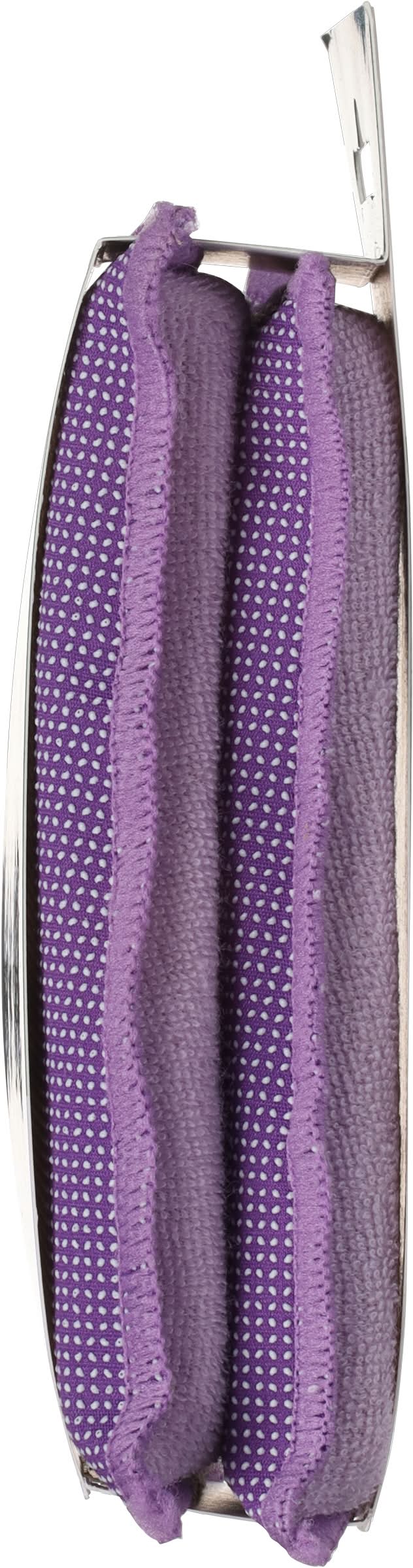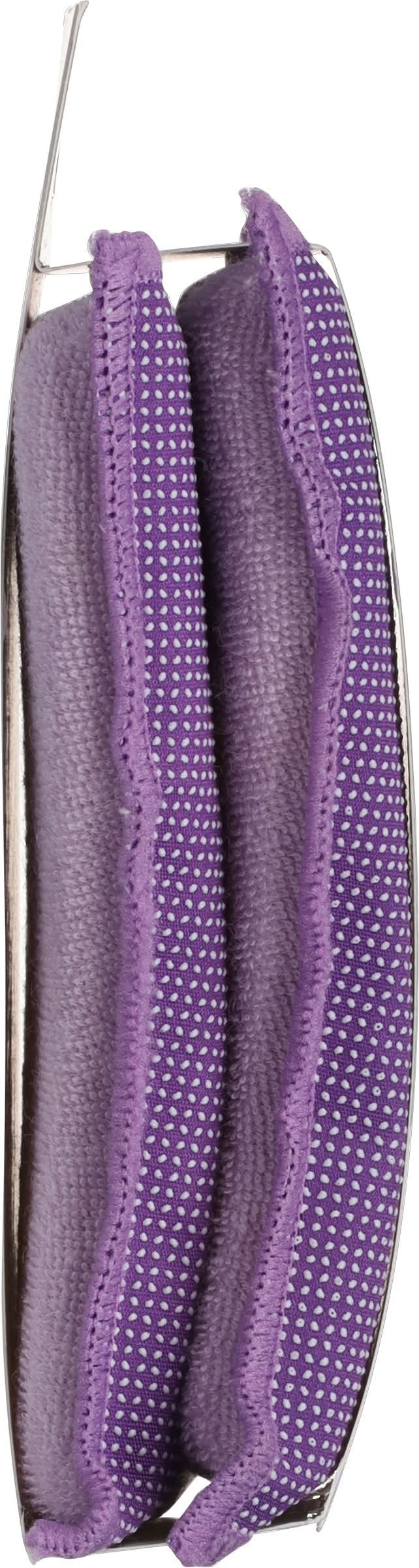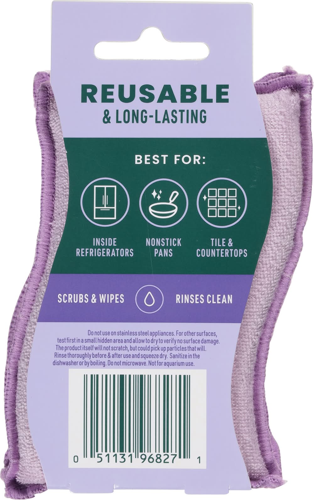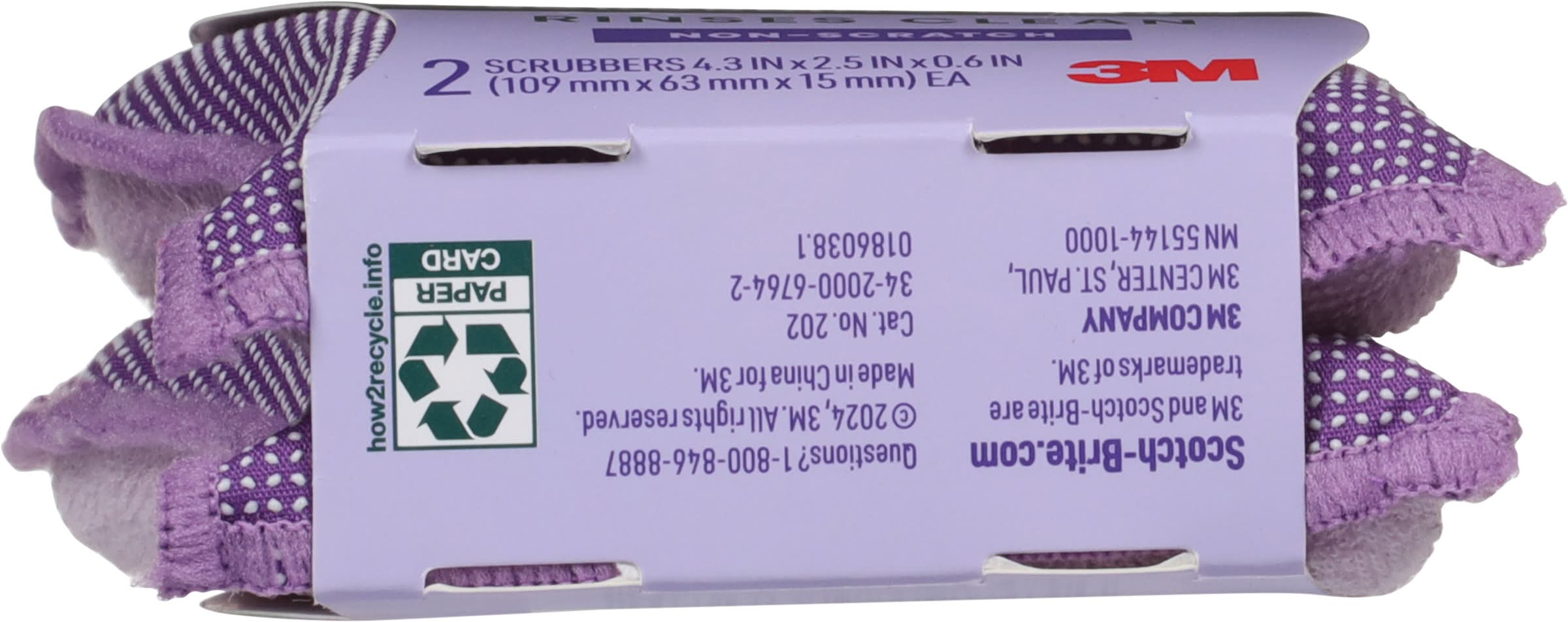 Rinses clean - even eggs and cheese won't stick. Two-sided for scouring and wiping. Non-Scratch Cleaning. Long lasting scrubbing material. Scrubbing surface rinses clean with water, the reverse side of the scrubber is a soft absorbent cloth that is great for wiping up spills. Scotch-Brite is long lasting and reusable. Use Location: Indoor Color: Purple