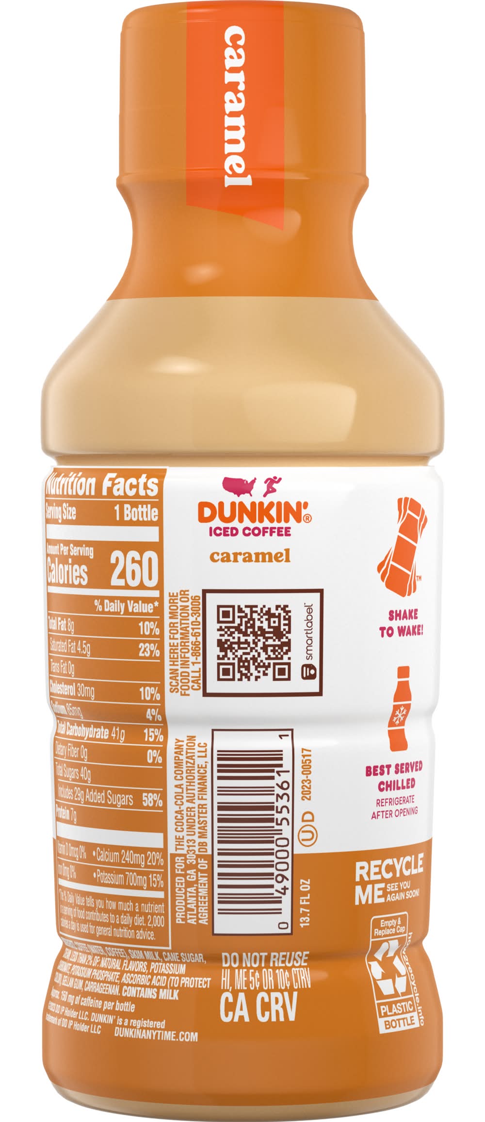 Contains the rich, smooth taste of Dunkin' coffee and a sweet and delicious caramel flavor to keep you running on Dunkin' all week. It's already customized and ready to drink, so simply pour over ice and enjoy! • Brand: Dunkin' • Flavor: Caramel • Packaging: Reusable