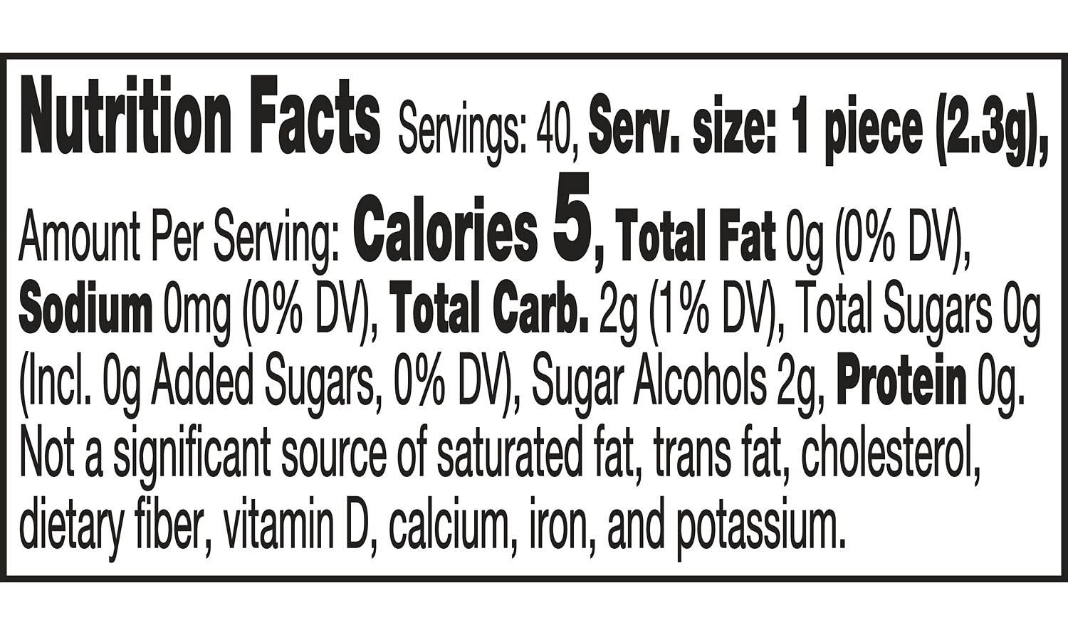 Ingredients: XYLITOL, GUM BASE, MALTITOL SYRUP, MANNITOL, CONTAINS 2% OR LESS OF: NATURAL ARTIFICIAL FLAVOR, GUM ACACIA, MALTODEXTRIN, MALIC ACID, CITRIC ACID, ARTIFICIAL COLOR (INCLUDING RED 40, YELLOW 5, YELLOW 6), LECITHIN (SOY), ASPARTAME*, GELATIN, ACESULFAME POTASSIUM, BHT (TO MAINTAIN FRESHNESS), NEOTAME, SORBITOL, SUCRALOSE. Contains: Contains: Soy