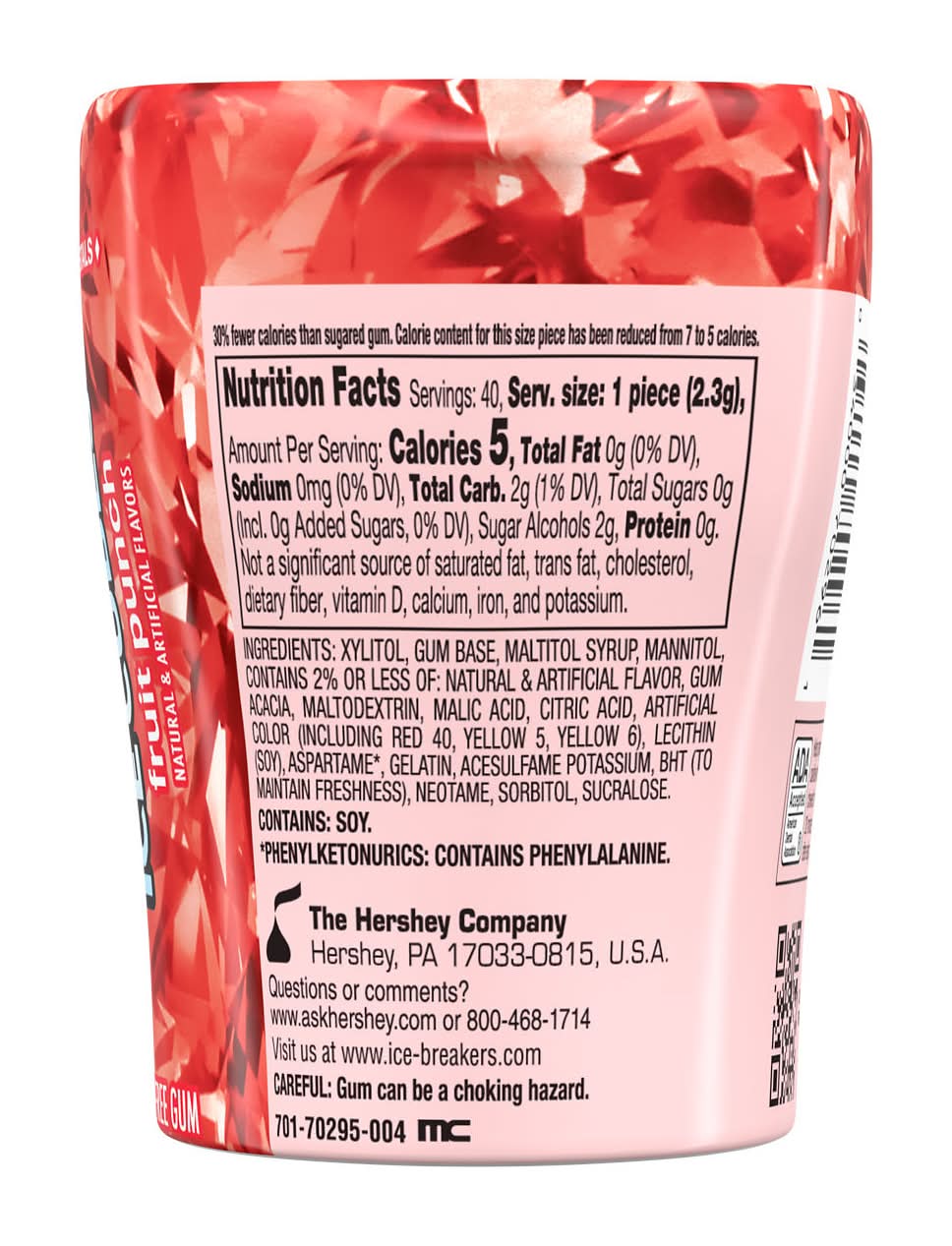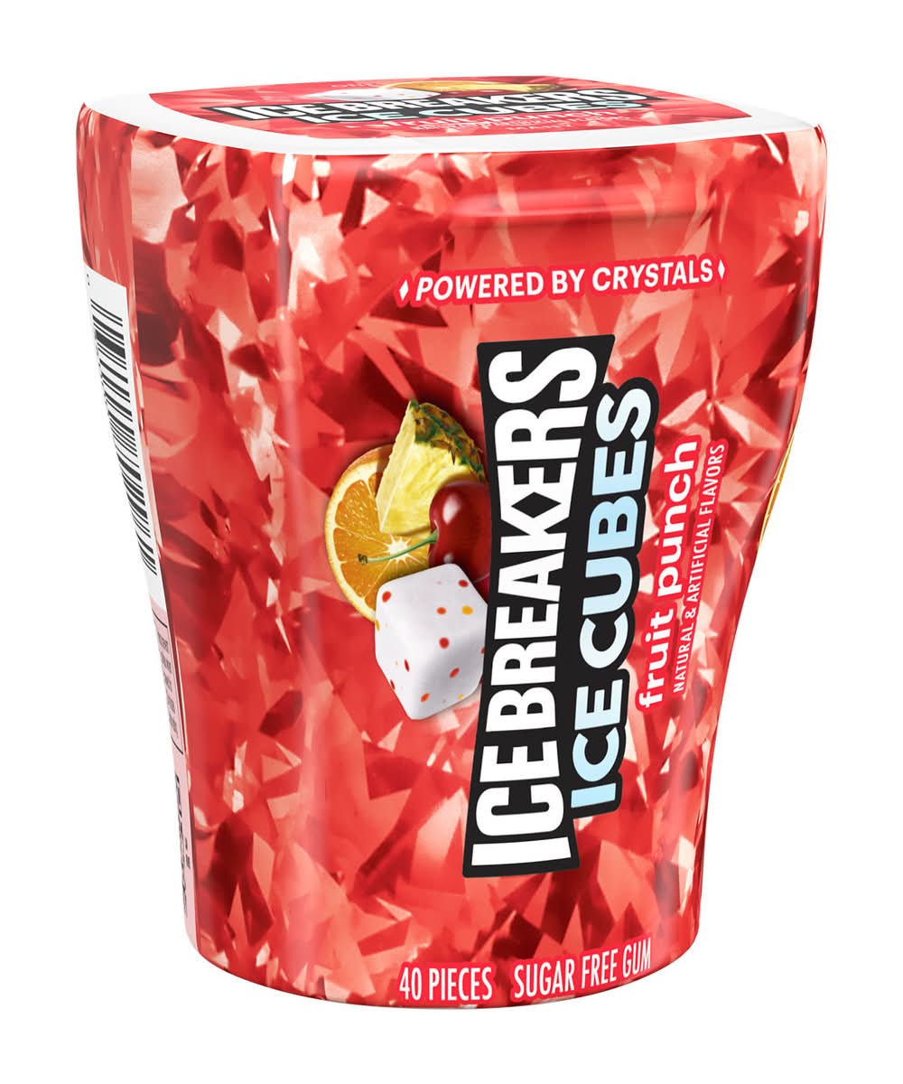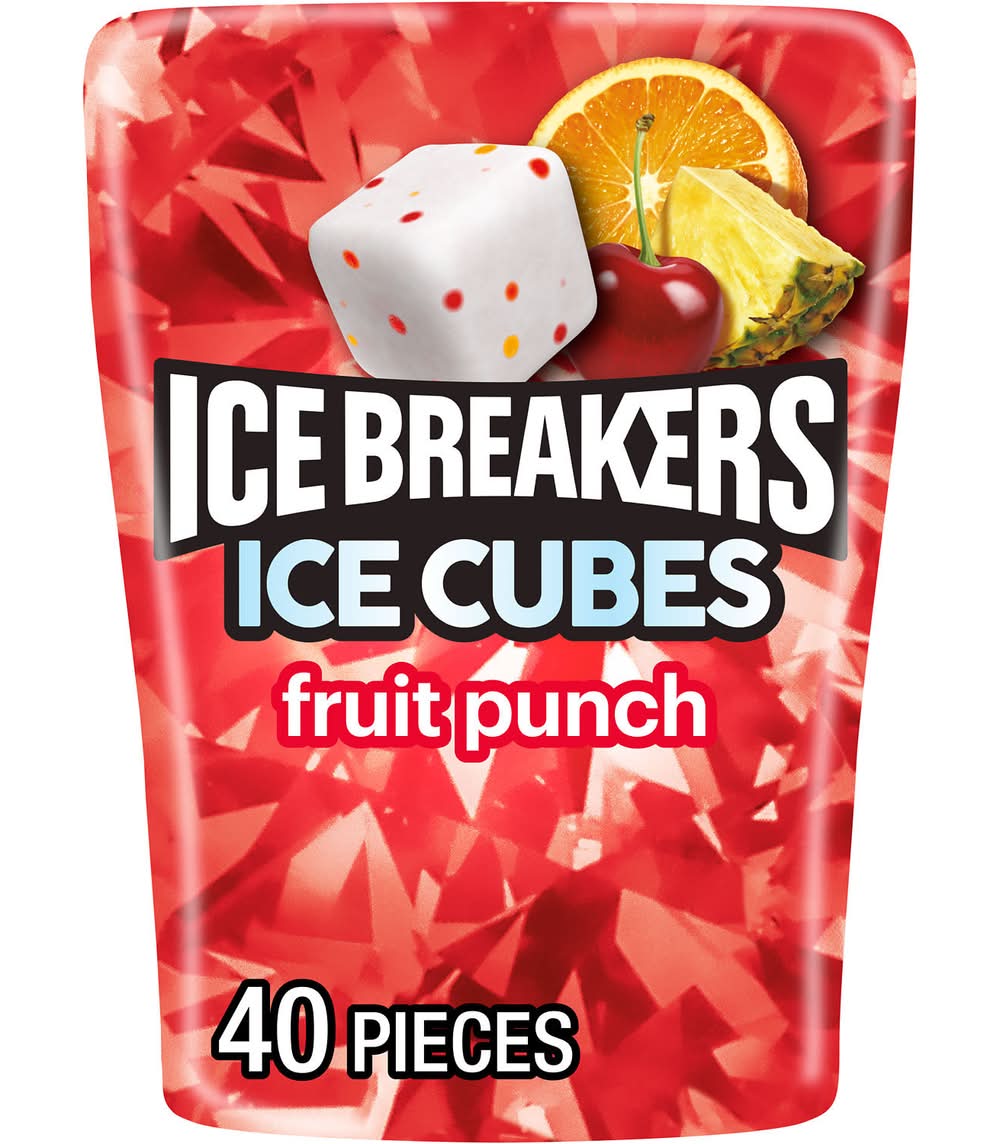 Appreciate refreshing, tropical flavors of cherry, pineapple and orange. Featured in a convenient 40-piece bottle, ICE BREAKERS ICE CUBES fruit punch flavored sugar free chewing gum offers a sugar free burst of invigorating sweetness. Take this convenient cube bottle anywhere you need a boost of freshness. This fruity chewing gum is a quick and delicious satisfaction, that'll be your best friend during important moments in your life. Wherever the day takes you, these ADA accepted ICE BREAKERS ICE CUBES chewing gum pieces are made with xylitol and keeps your taste buds busy during meetings, after lunch, throughout movie nights and in the car. Feeling generous? With this 40-piece gum cube bottle, it's easy to share this fruity treat amongst friends, family and co-workers. Getting ready for a first date? Pop a chewing gum piece before the first hello! Need to wake up during long road trips? Get a burst of energy after the first chew. Display this vibrant cube near the candy dish at home or work to let guests, family members, friends and co-workers help themselves. They're sure to thank you for the long-lasting chewing gum treat. After all, it's just as good as a cold glass of fruit punch without any of the fuss. • Brand: Ice breakers • Flavor: Fruit punch