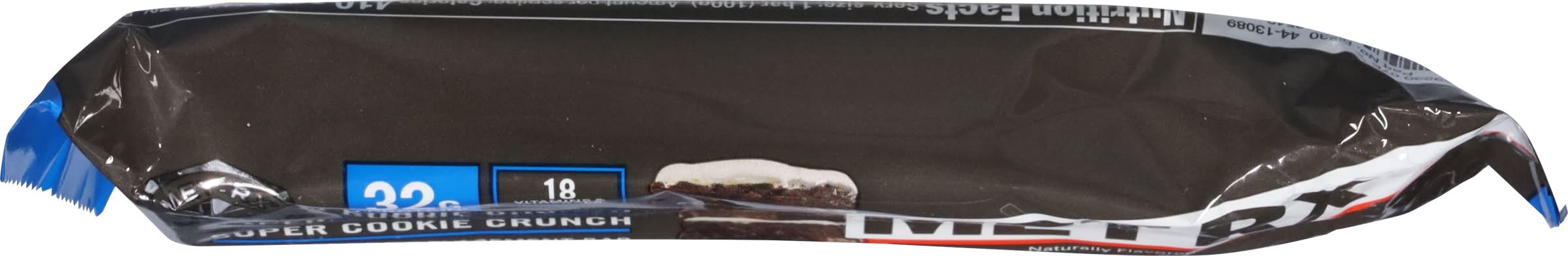 MET-Rx Big 100 Super Cookie Crunch Protein Bars are protein-packed meal replacement bars that include high-quality protein to to fuel up on demand. Made with crunchy cocoa crisps and a smooth chocolate coating, this meal replacement bar delivers a delicious, satisfying taste. These nutritious MET-Rx bars are naturally flavored, this cookie bar is a great way to help promote muscle recovery.(1) These protein meal replacement bars include the MET-Rx Metamyosyn blend. Toss these high protein bars in your gym bag for a tasty cookie crunch chocolate protein bar treat pre workout or post workout, or enjoy these MET-Rx protein bars anytime you need a quick meal on the run. • Brand: Met-rx • Flavor: Super cookie crunch • gluten-free
