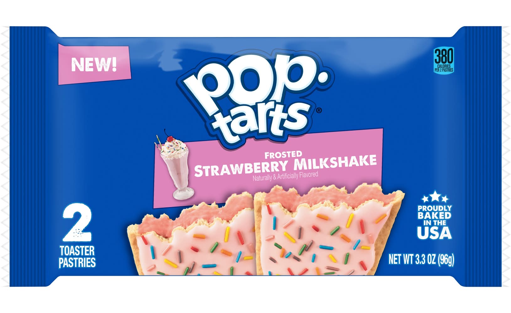 A smooth & creamy strawberry milkshake taste in a soft pastry crust with sweet filling on the inside topped with delicious strawberry-flavored frosting. Convenient, ready-to-eat toaster pastries packaged for freshness or quick heat option. • Brand: Pop-tarts • Flavor: Frosted strawberry milkshake