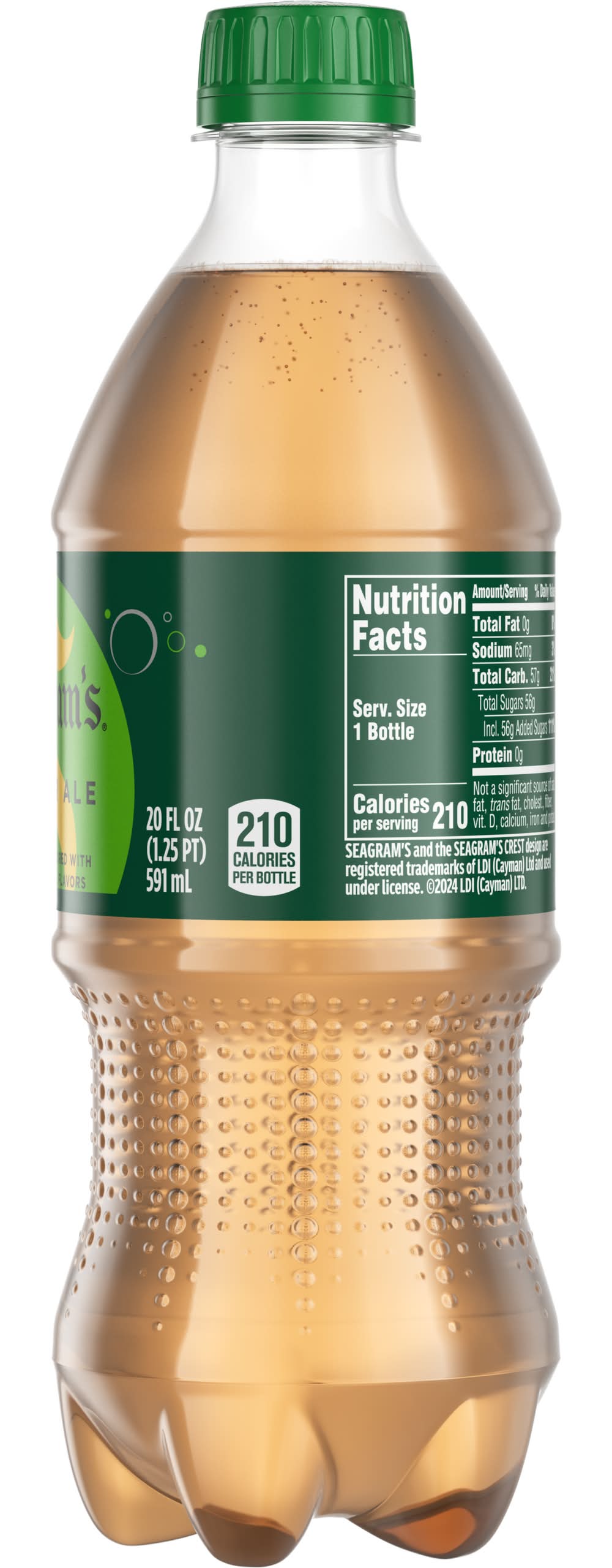 Seagram's is a crisp and caffeine-free, ginger ale soda that’s ready for anything. • Brand: Seagram's escapes • Packaging: Reusable