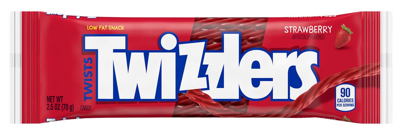 There's no party like a TWIZZLERS candy party! Seriously though, TWIZZLERS Twists strawberry flavored chewy candies are too fun not to enjoy at every movie marathon, birthday party and tailgate. With a bag of strawberry flavored chewy candies ready for action, you'll never find yourself without a delicious shareable snack. Bite both ends of a TWIZZLERS Twists candy off to create a straw, then dip your straw into a cold glass of milk, a steaming hot chocolate or a frothy milkshake. If you're more into eating a couple of these chewy treats on their own, you'll be ready to go the second you open the bag. Keep your pantry stocked with kosher certified, low fat TWIZZLERS Twists candies, store some in your work desk, take a bag on a road trip and bring some to your next party gathering. Looking for an even greater adventure? For a unique twist, melt several white or milk chocolate bars. Dip your strawberry TWIZZLERS candies in the melted goodness, then cover each piece in sprinkles and let the new treats cool. TWIZZLERS Twists are also great for sharing around the holidays. Stuff festive Christmas stockings, fill Easter baskets, create Valentine's Day gift bags and pass out these strawberry flavored treats at Halloween. • Brand: Twizzler's • Flavor: Strawberry