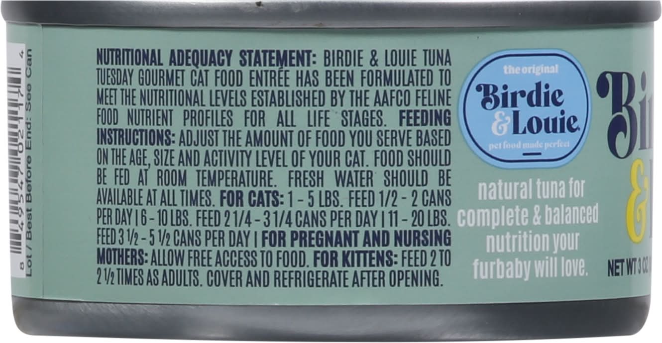 Cat Food Entree, Gourmet, Tuna Tuesday Brand: Birdie & louie