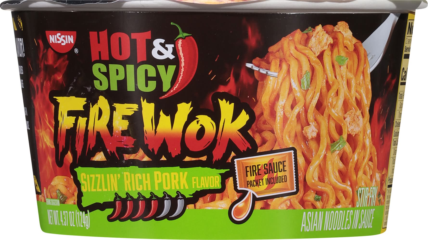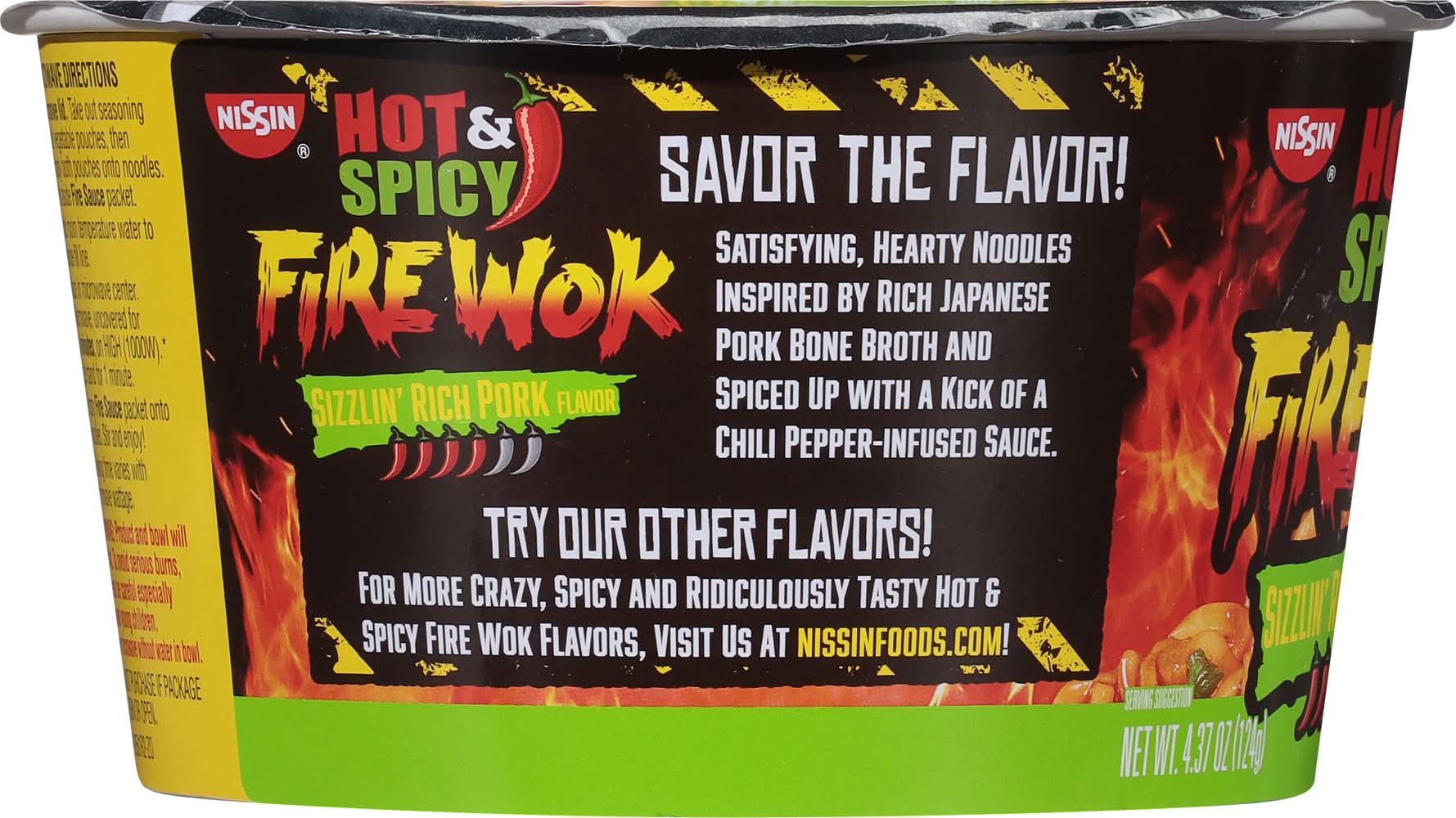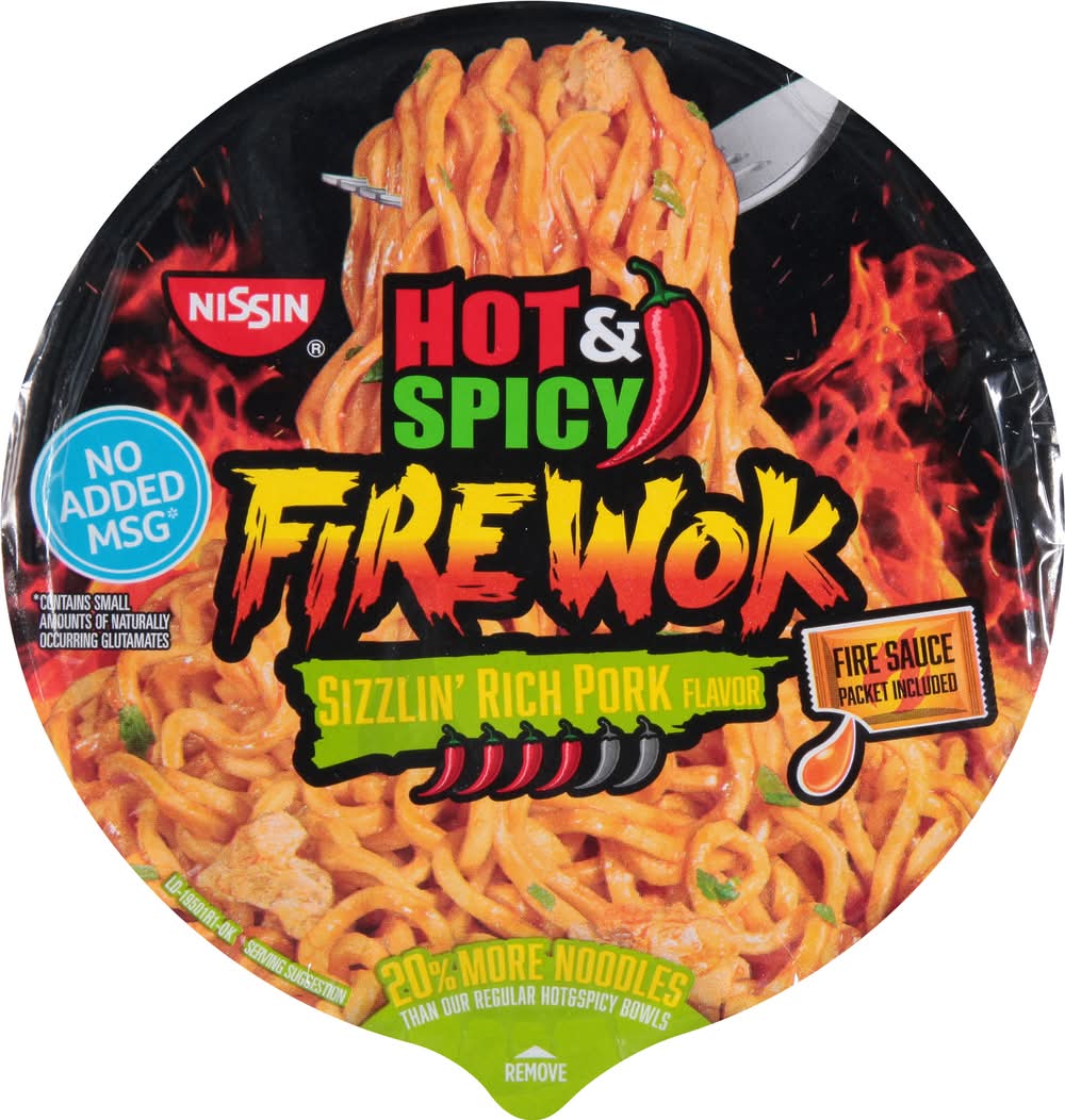 Nissin Hot & Spicy Fire Wok Noodles, Sizzlin’ Rich Pork (4.37 oz)