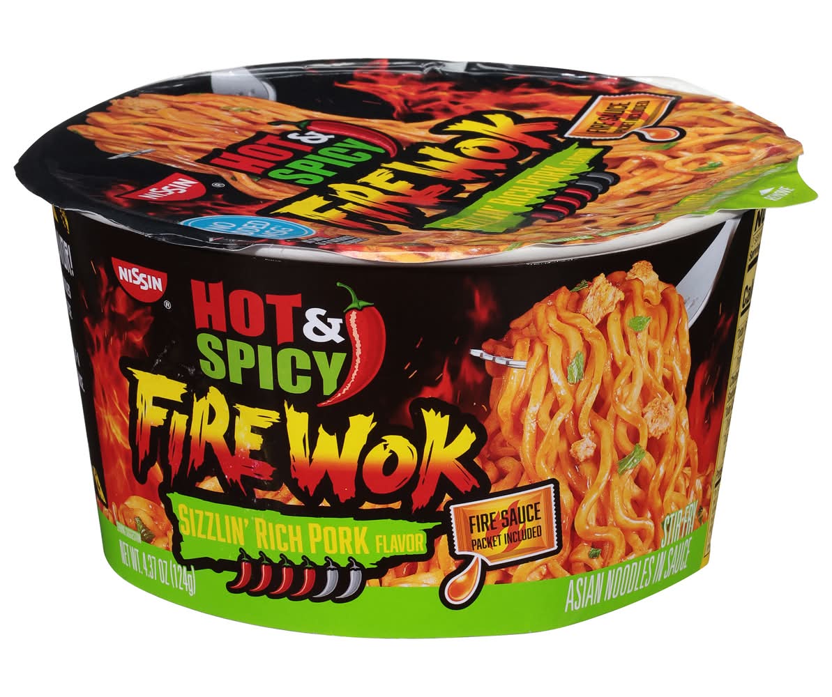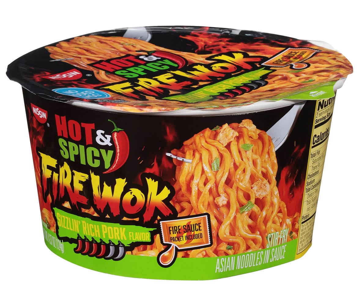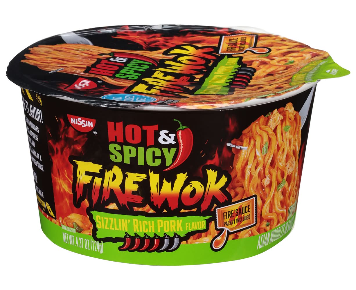 Nissin Hot & Spicy Fire Wok Noodles, Sizzlin’ Rich Pork (4.37 oz)