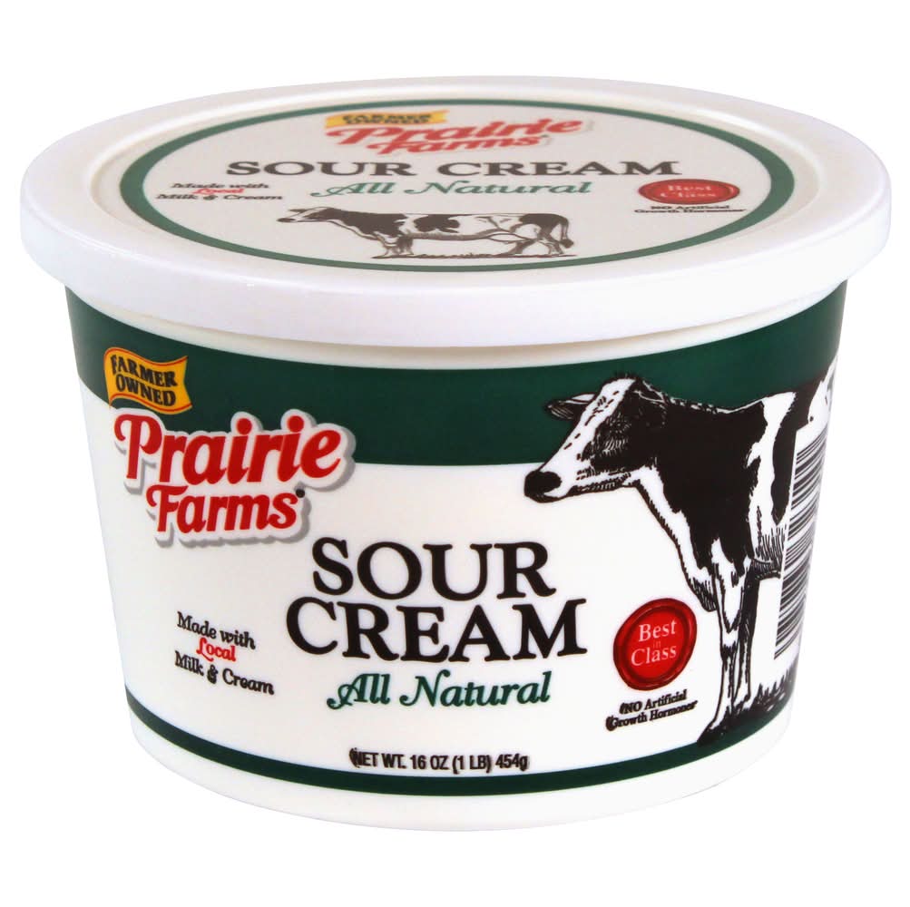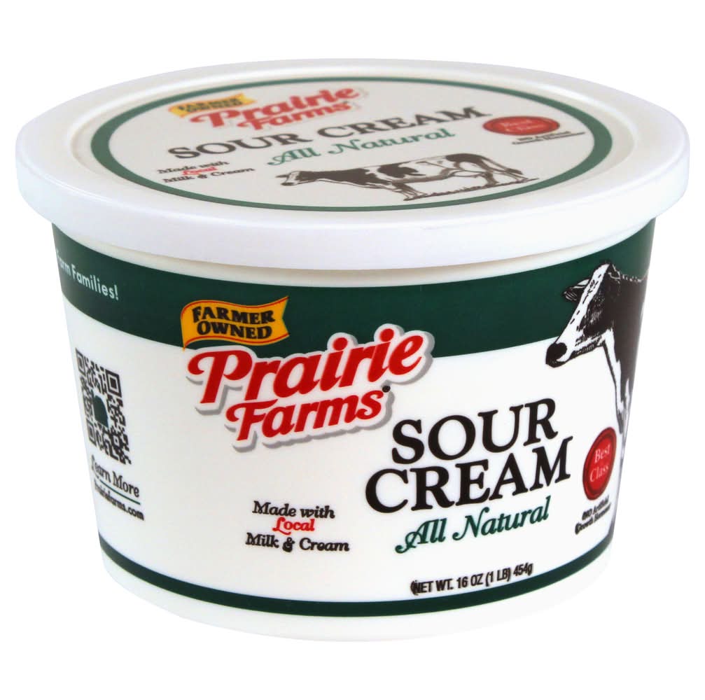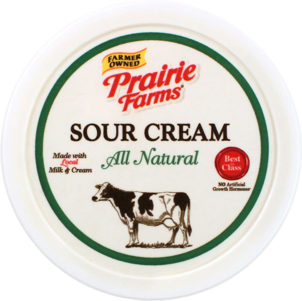 All Natural Sour Cream offers a rich, creamy taste and texture. Ideal for enhancing the flavor of your favorite recipes or as a standalone topping, this sour cream is crafted without artificial additives. • Brand: Prairie farms • gluten-free, kosher • Packaging: Reusable
