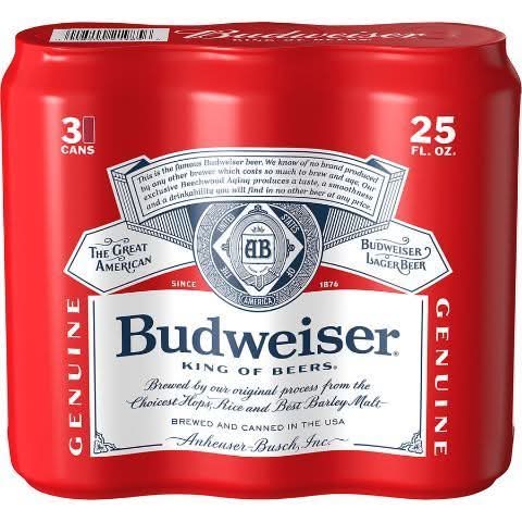 The King of Beers, crisp, refreshing American-style lager. Brewed in U.S.A.. ABV: 5%. • Brand: Budweiser • Pack size: 3