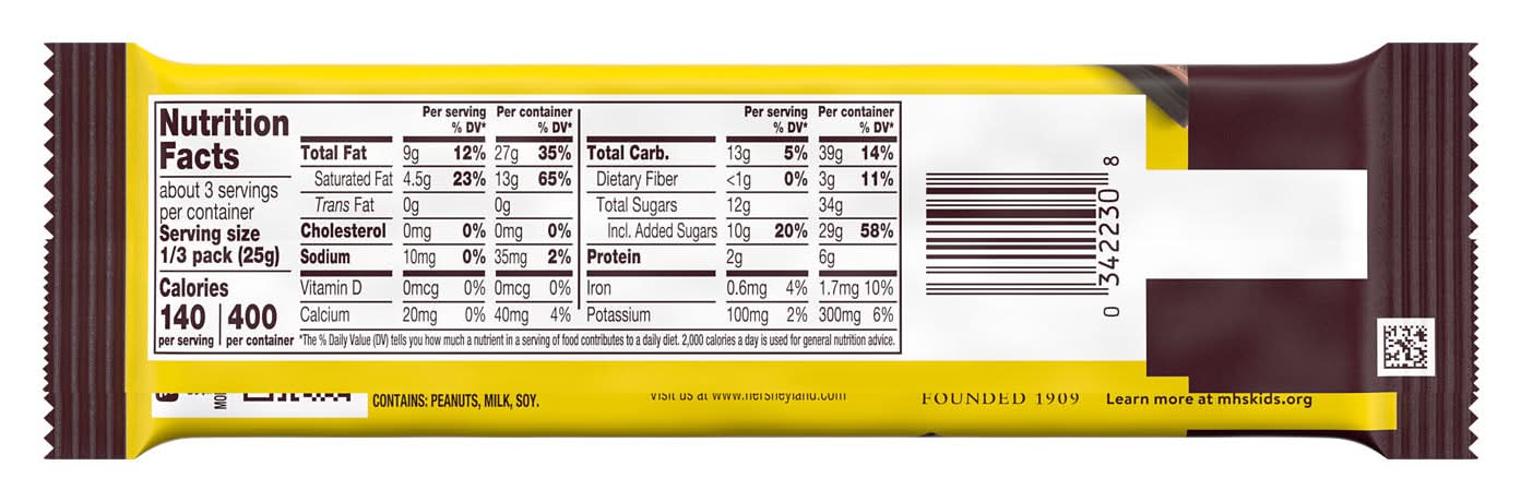 Smooth chocolate candy combined with is a classic candy and a long-standing favorite for any enthusiast. Behind each iconic yellow wrapper is the delicious combination people have known and loved for decades. • Brand: Hershey's • Flavor: Chocolate • Number of servings: 3