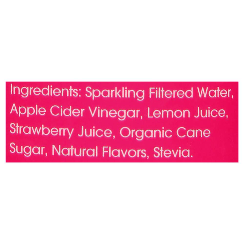 Ingredients: Sparkling Water, Cassava Root Fiber, Organic Cane Sugar, Organic Apple Cider Vinegar, Natural Flavors, Lemon Juice*, Strawberry Juice*, Organic Agave Inulin, Stevia Leaf Extract. *Concentrate.