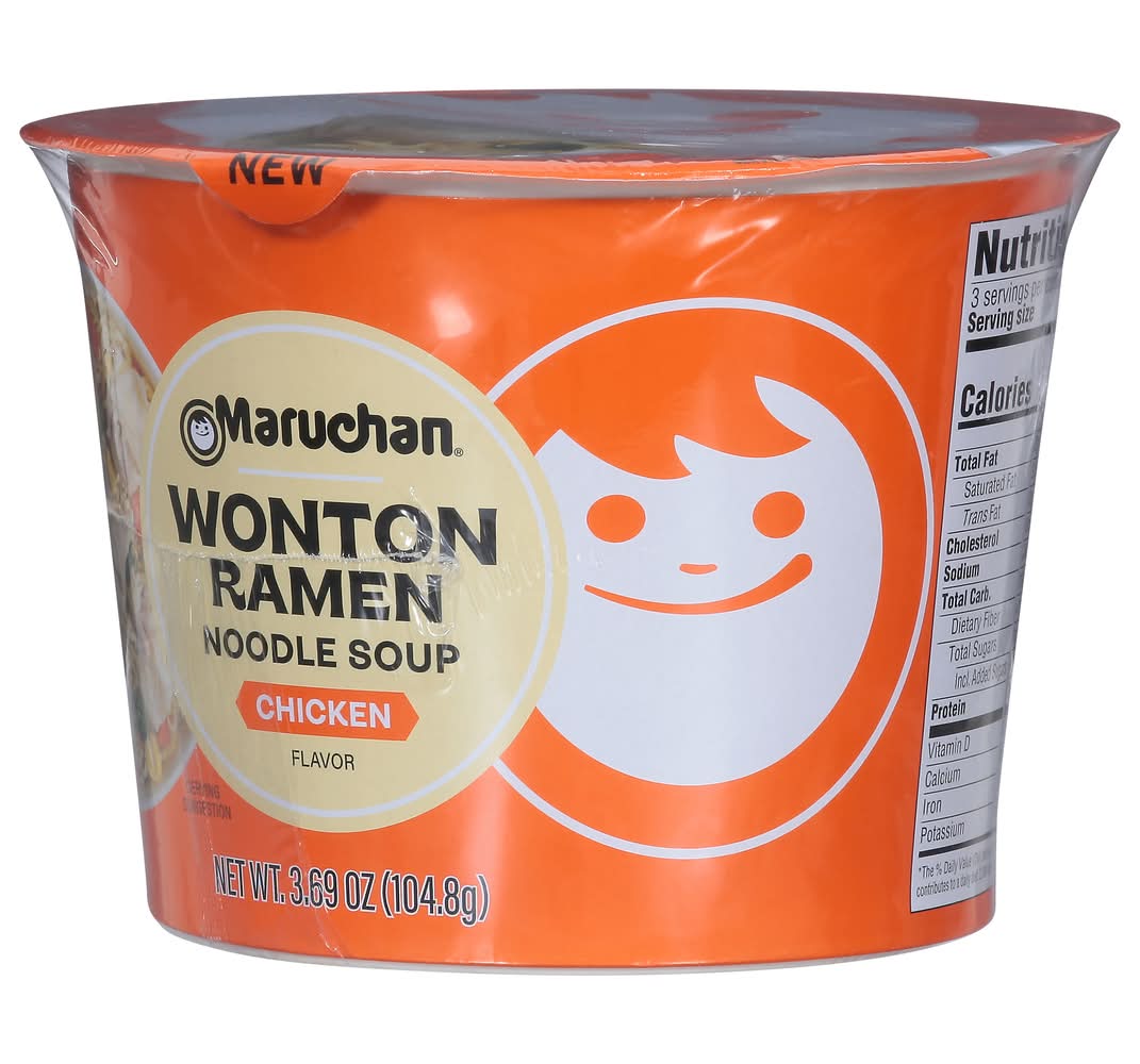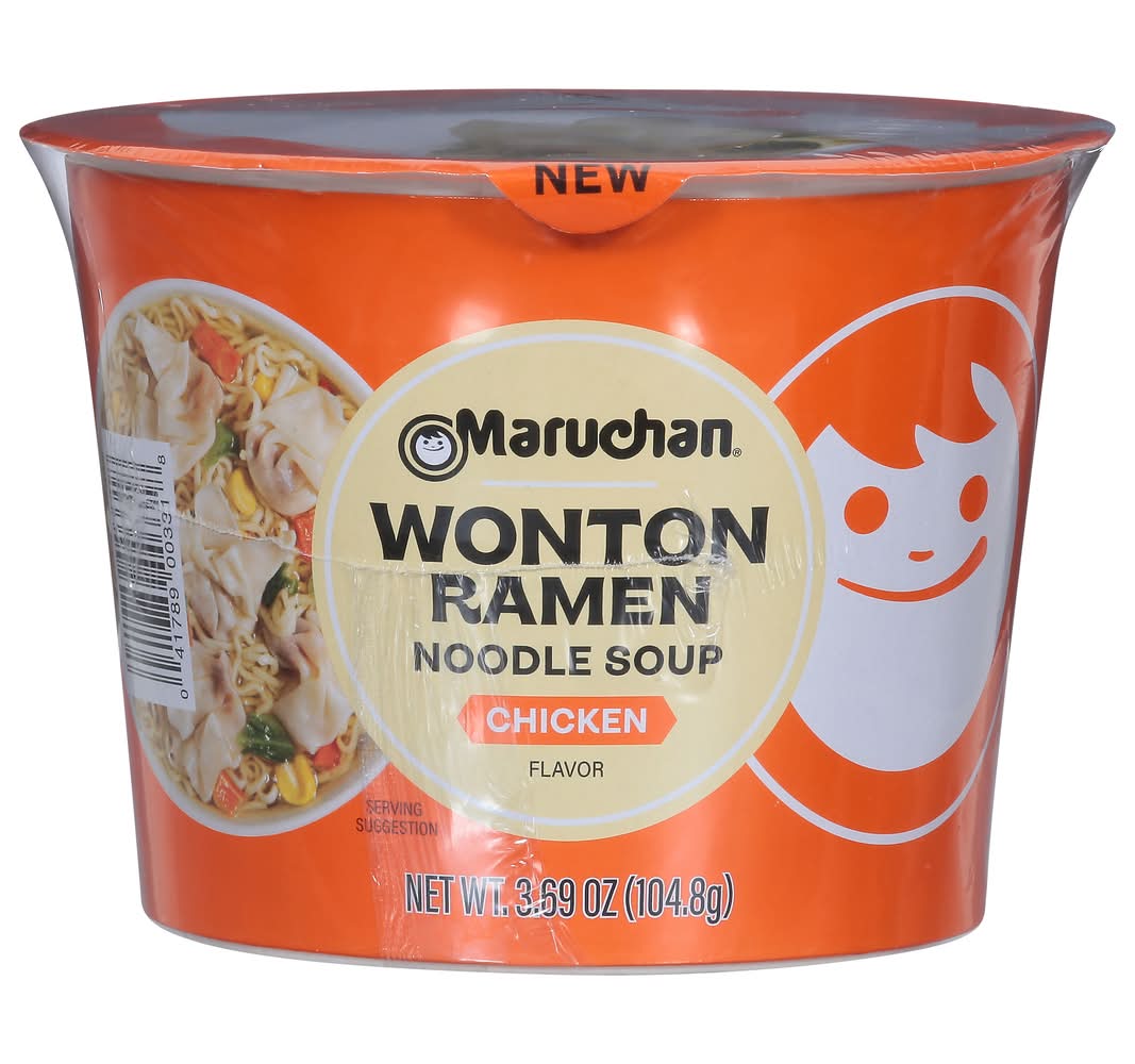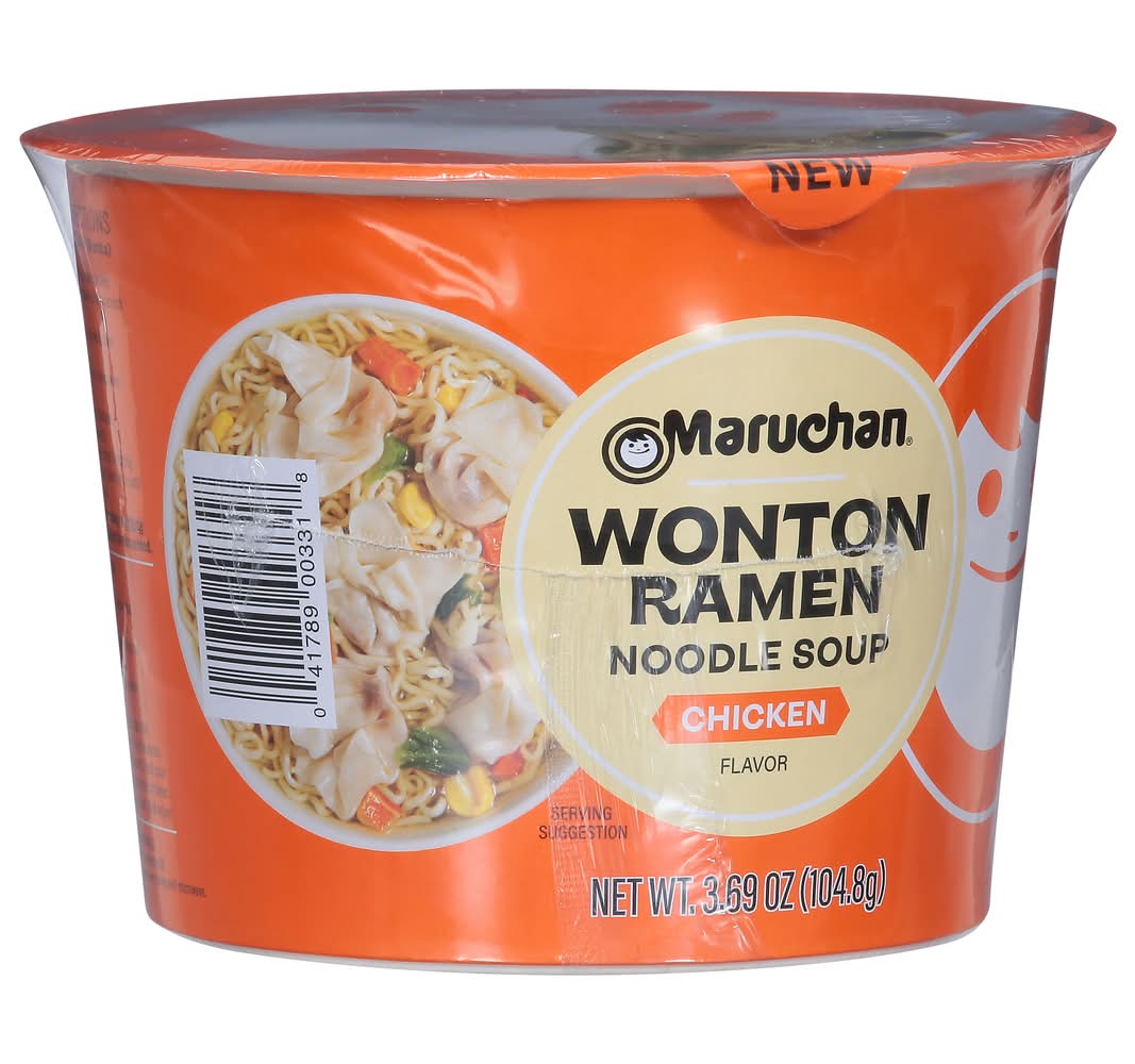 Experience the joy of rich, flavorful wontons combined with the familiar comfort of smooth ramen noodles. Maruchan Wonton Ramen Noodle Soup brings excitement back to mealtime. • Brand: Maruchan • Flavor: Chicken