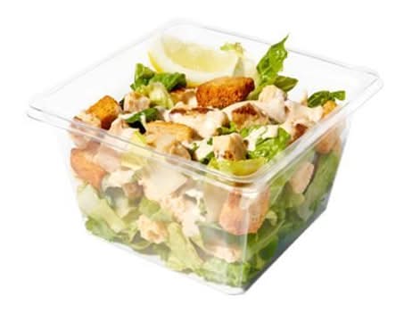 Crispy lettuce, white meat chicken, parmesan cheese, crispy croutons, parmesan cheese crisps, lemon wedge and classic Caesar dressing Brand: 7-eleven salad