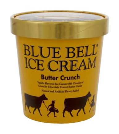 Tasty vanilla ice cream loaded with chunks of crunchy chocolate peanut butter candy. Brand: Blue bell