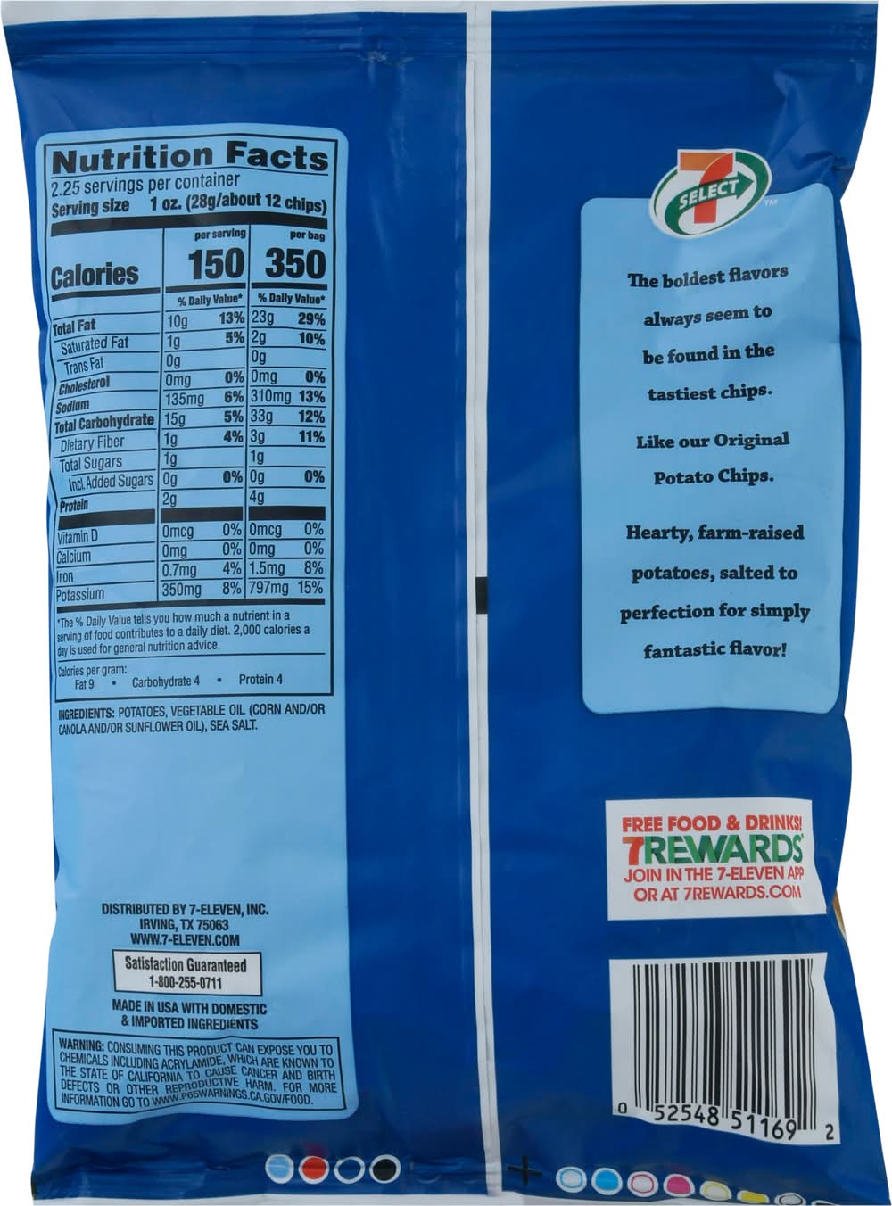 Deliciously crunchy. The boldest flavors always seem to be found in the tastiest chips. Like our Original Potato Chips. Hearty, farm-raised potatoes, salted to perfection for simply fantastic flavor! Product of Canada. Made in USA with domestic & imported ingredients. • Brand: 7-select • Flavor: Original • kosher