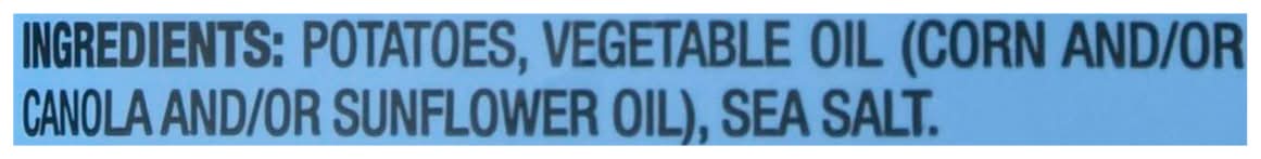 Ingredients: Potatoes, Vegetable Oil (Corn and/or Canola and/or Sunflower Oil), Sea Salt