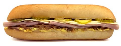 Sliced ham, pork carnitas, pickles, Swiss cheese and a mayonnaise-mustard sauce on an authentic Cuban style sub roll Brand: 7-eleven