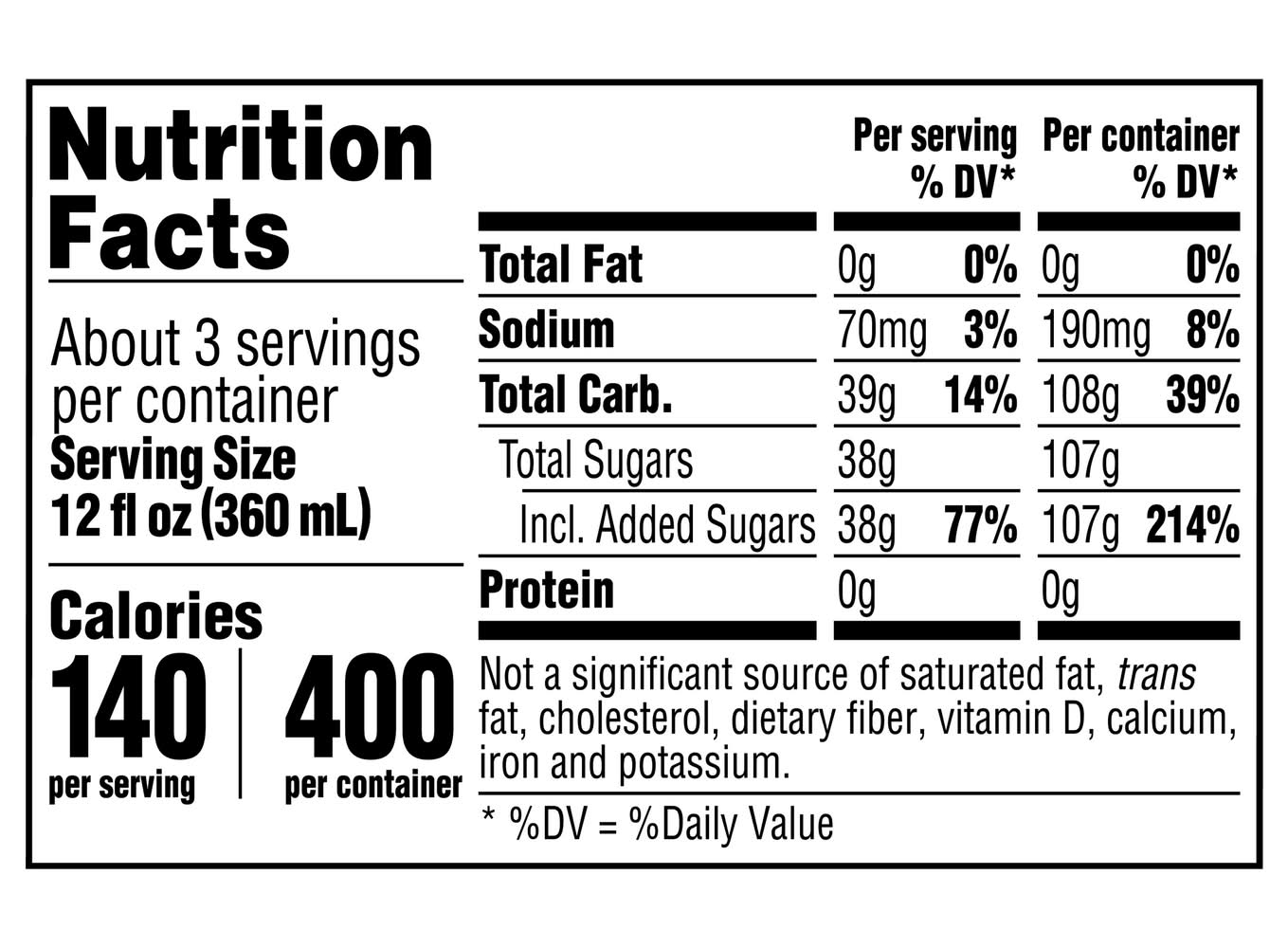 Ingredients: Carbonated Water, High Fructose Corn Syrup, Citric Acid, Natural Flavors, Sodium Citrate, Sodium Benzoate (to Protect Taste)