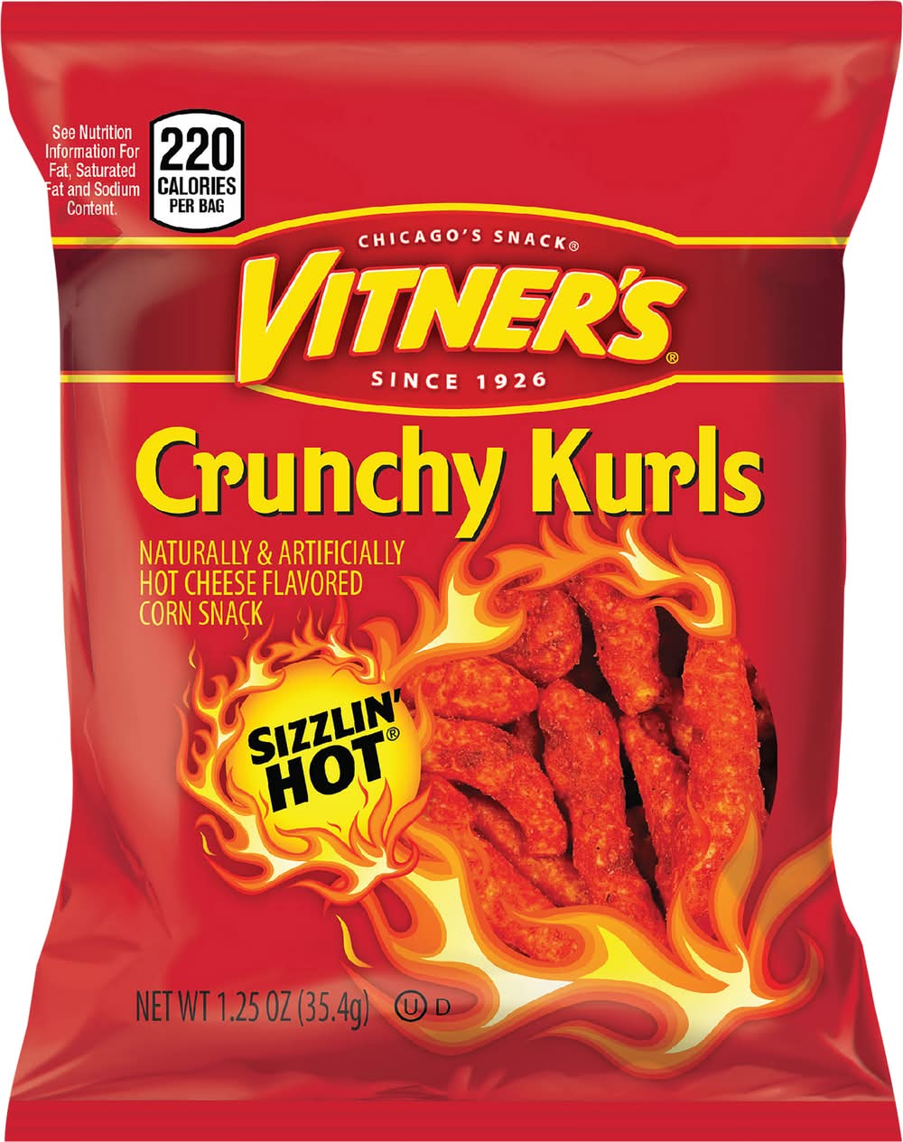 Vitner's Sizzlin' Crunchy Kurls Corn Snack, Hot Cheese (1.25 oz)