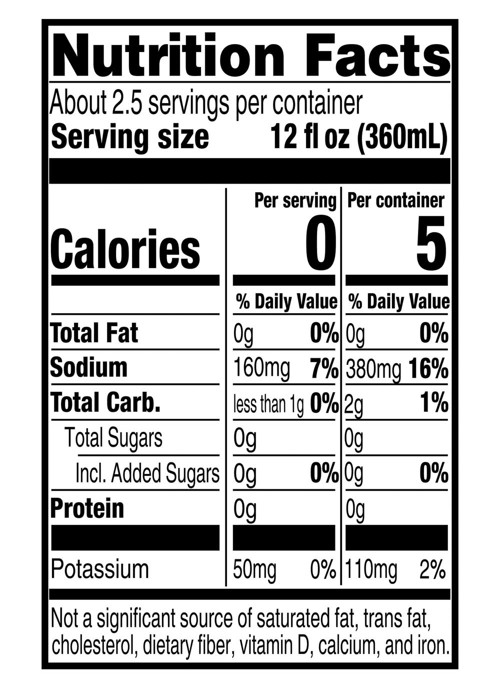 Ingredients: Water, Citric Acid, Sodium Citrate, Salt, Monopotassium Phosphate, Modified Food Starch, Natural Flavor, Sucralose, Glycerol Ester of Rosin, Red 40, Acesulfame Potassium, Caramel Color