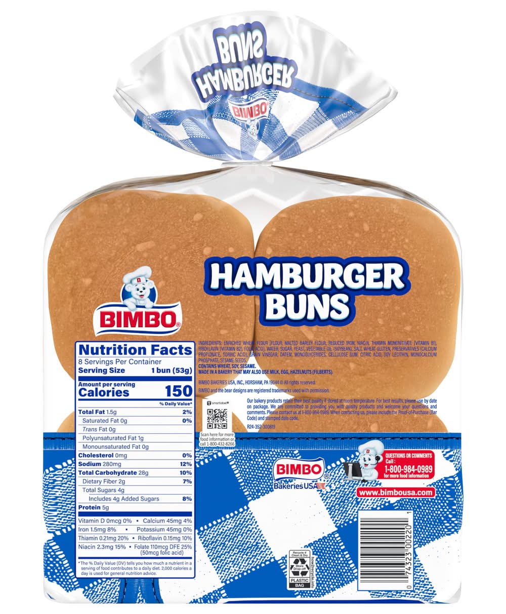 Bimbo Hamburger Buns (15 oz, 8 ct)