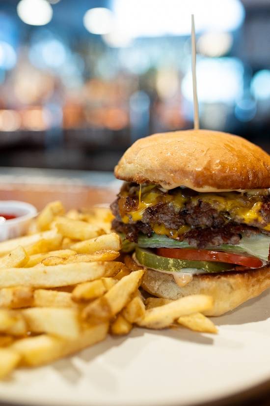 American cheese + grilled onions + pickles + iceberg lettuce + tomato + burg sauce