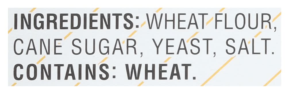 Ingredients: Wheat Flour, Cane Sugar, Yeast, Salt Contains: Wheat