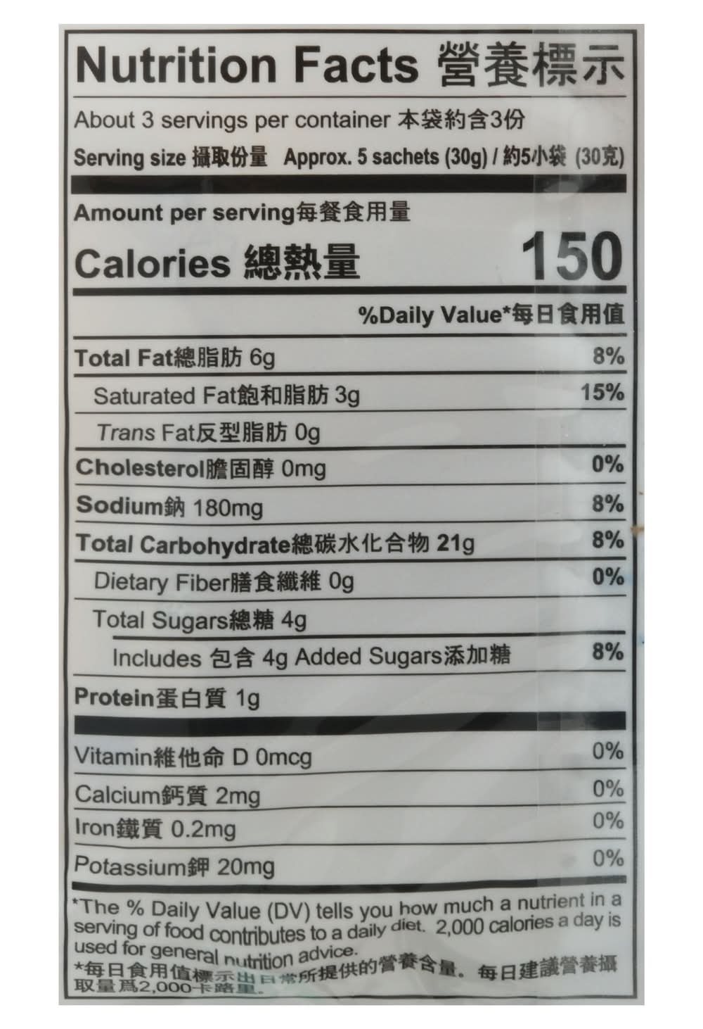 Ingredients: Japonica Rice, Palm Oil [Contains Antioxidant Tertiary Butylhydroquinone (TBHQ)], Sugar, Glucose, Soy Sauce Powder (Soy, Wheat, Maltodextrin, Salt), Salt, Monosodium Glutamate Contains: Soybeans, Wheat