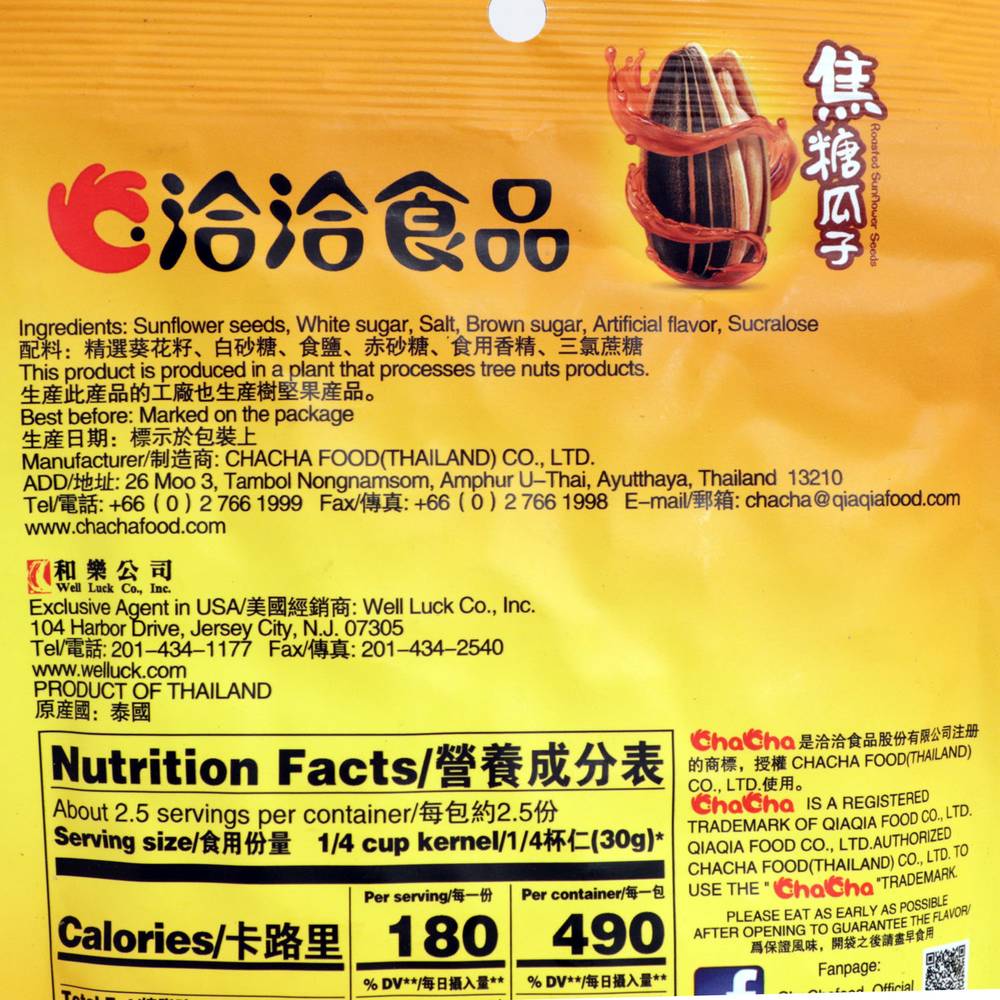 Ingredients: Sunflower seeds, White sugar, Salt, Brown sugar, Artificial flavor, Sucralose Contains: Tree nuts