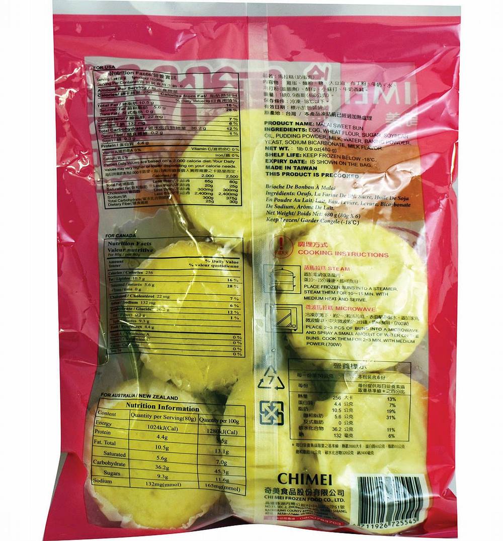 Chimei Frozen Malai Sweet Bun (16.93 oz, 6 ct)