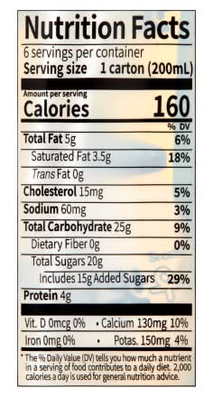 Ingredients: Milk, Water, Sugar, Dextrin, Banana Juice Concentrate (0.32%) [Banana (100%)], Artificial Flavors, Mono- and Diglycerides, Carrageenan, Annatto (For Color), Guar Gum Contains: Dairy, Lactose, Milk
