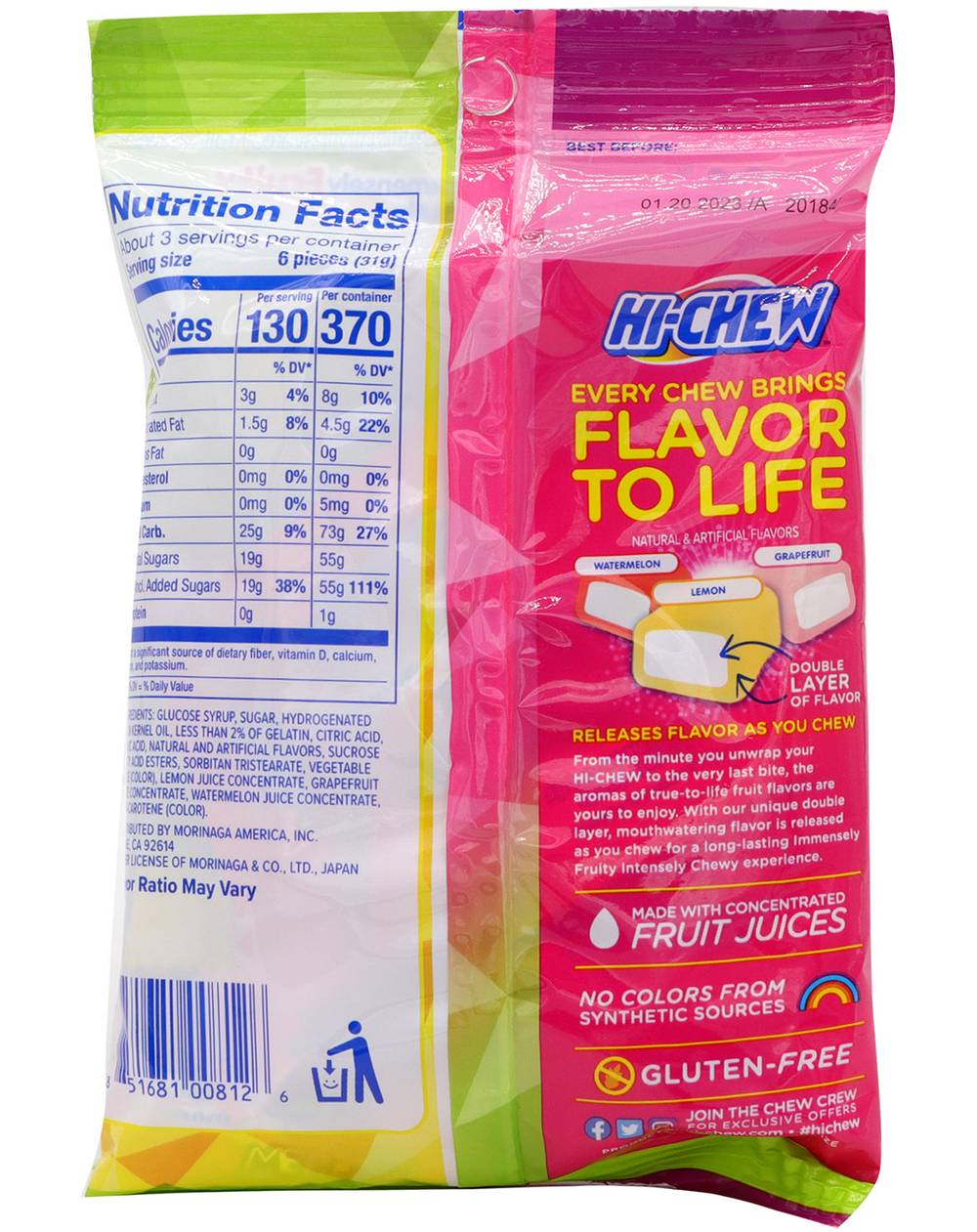 Hi-Chew Sweet & Sour Chewy Candy, Watermelon-Lemon-Grapefruit (3.17 oz)