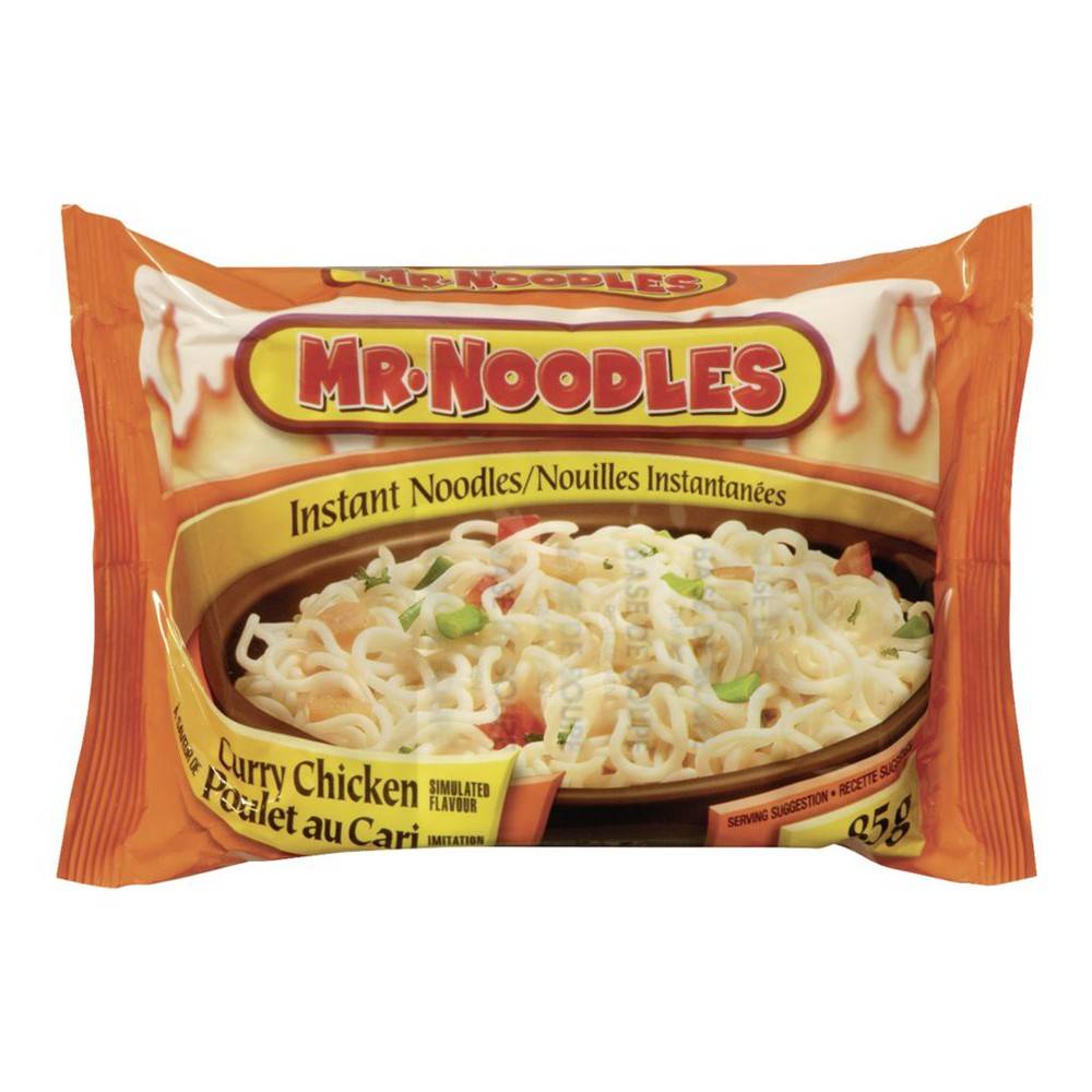 Mr. Noodles Instant Noodles, Curry Chicken, offers a quick and convenient meal option. Prepared in an 85 g package, these noodles provide a rich curry chicken flavor. Manufactured in a facility that also processes egg, milk, fish, shellfish, soy, nuts, sesame seeds, and sulphites, consumers with allergies should be aware of the potential for cross-contamination. • Brand: Mr. noodles • Flavor: Curry chicken