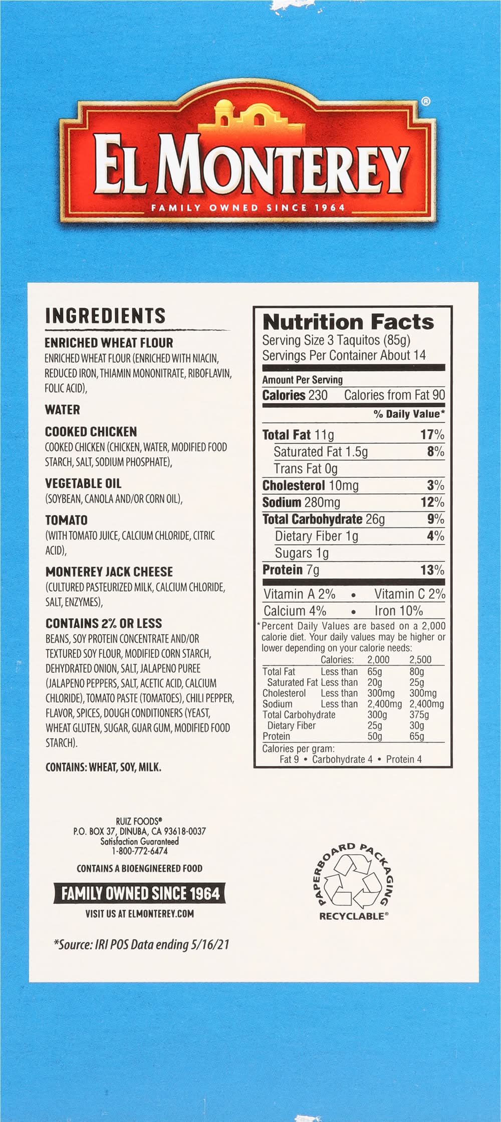 El Monterey Chicken & Cheese Taquitos (44 oz, 44 ct)