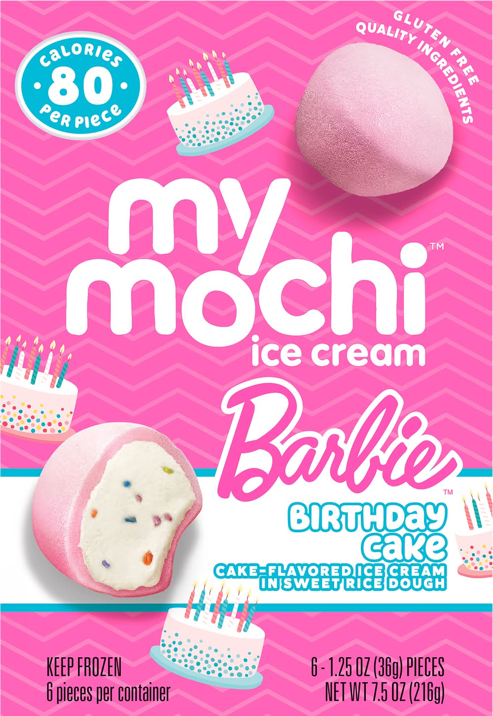 My/Mochi Barbie Ice Cream, Birthday Cake (7.5 oz, 6 ct)