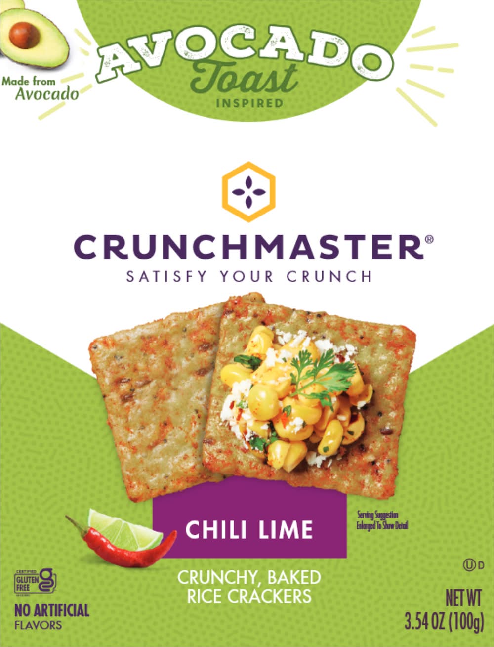Avocado Toast Inspired Chili Lime Rice Crackers Flavor: Chili lime