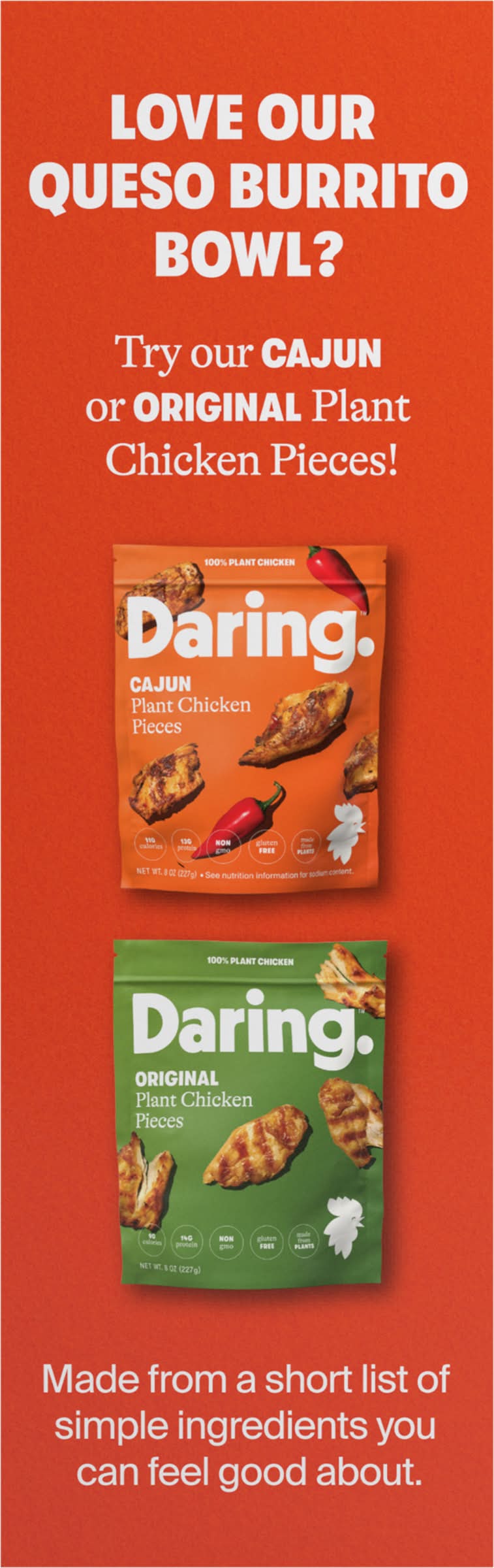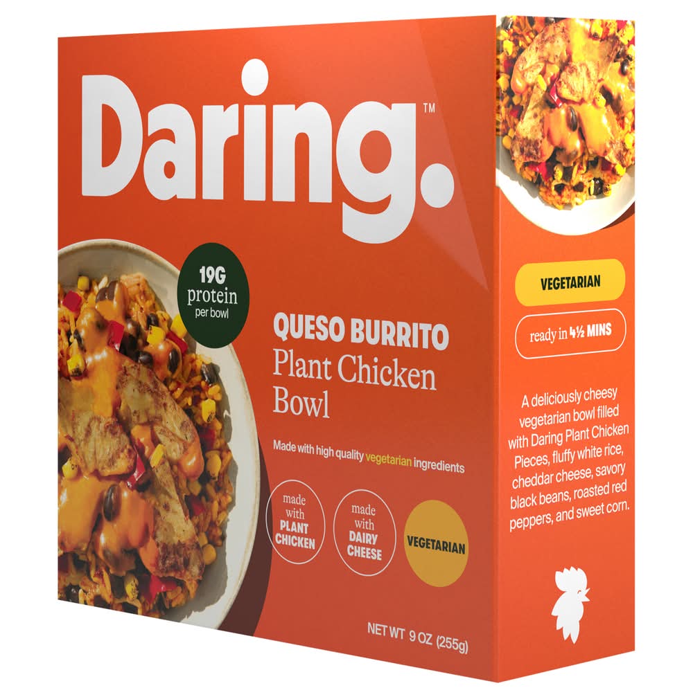 Daring Frozen Vegetarian Queso Burrito Plant Chicken Bowl (9 oz)