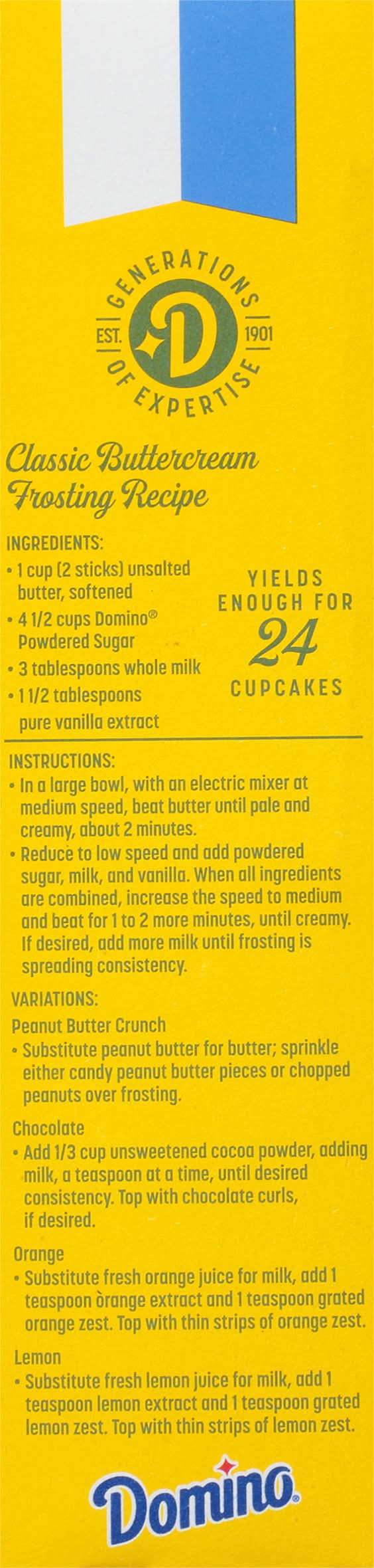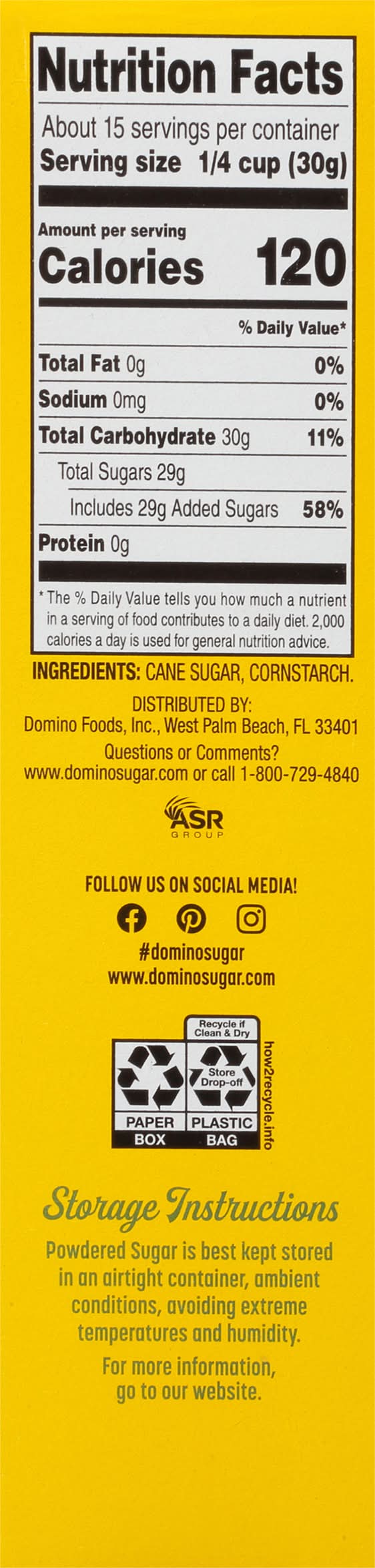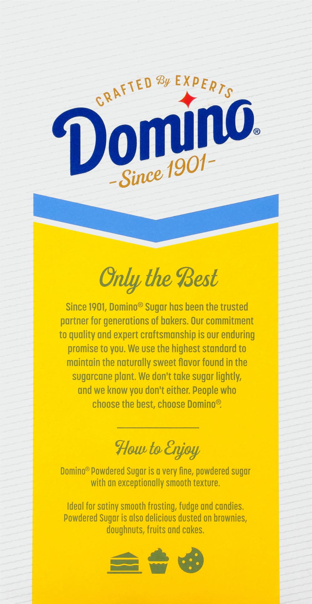 Directions for use: How to Enjoy: Domino Powdered Sugar is a very fine, powdered sugar with an exceptionally smooth texture. Ideal for satiny smooth frosting, fudge and candies. Powdered Sugar is also delicious dusted on brownies, doughnuts, fruits and cakes. Storage Instructions: Powdered Sugar is best kept stored in an airtight container, ambient conditions, avoiding extreme temperatures and humidity. For more information go to our website. Storage recommendation: Storage Instructions: Powdered Sugar is best kept stored in an airtight container, ambient conditions, avoiding extreme temperatures and humidity. For more information go to our website.