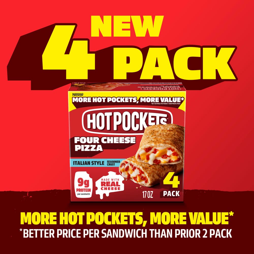 Hot Pockets Italian Style Seasoned Crust Sandwiches, Four Cheese Pizza (17 oz, 4 ct)