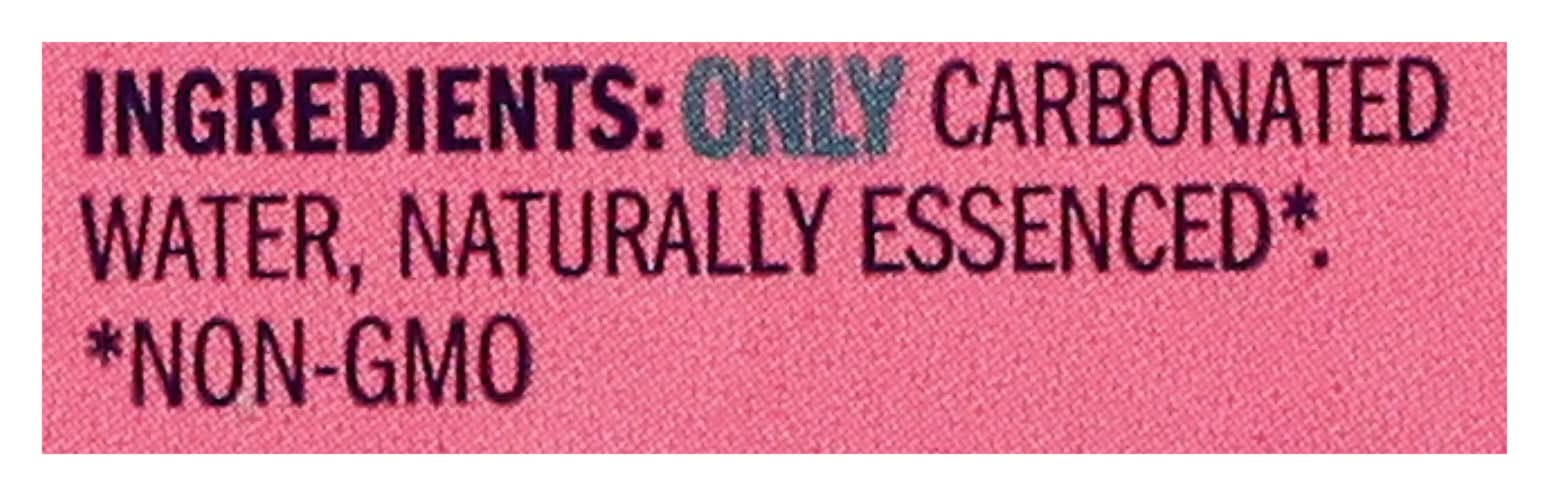 Ingredients: Only Carbonated Water, Naturally Essenced (Non-GMO)