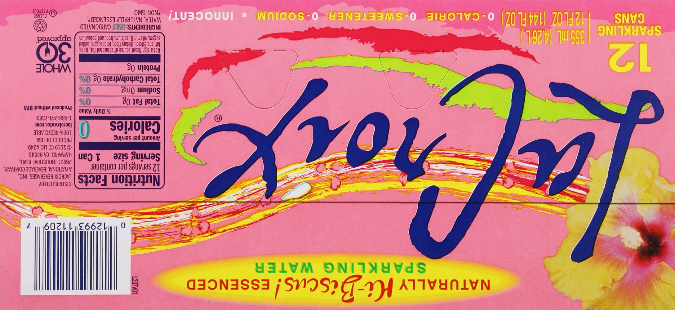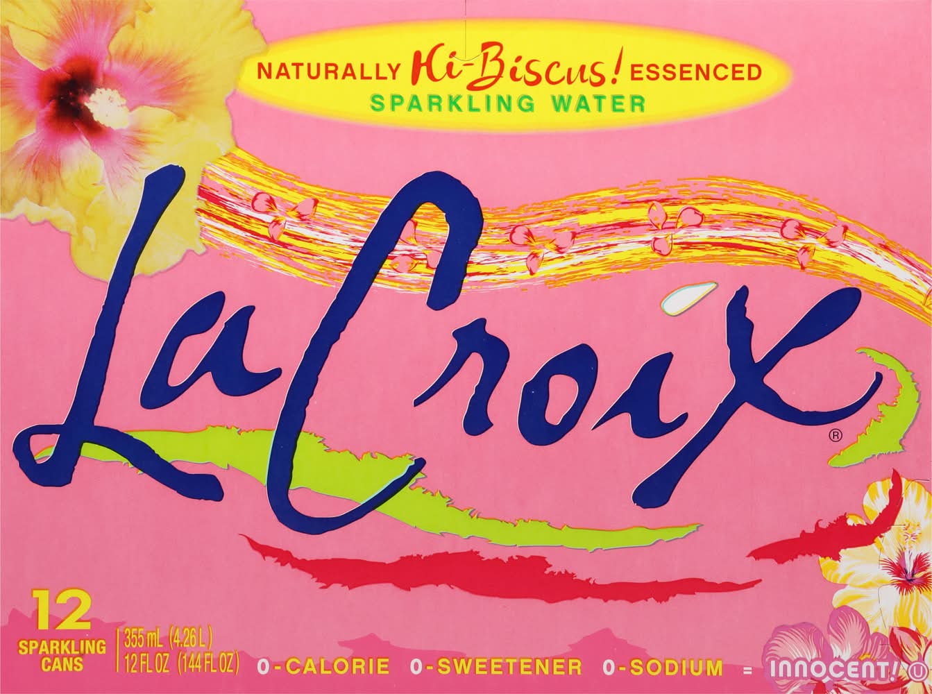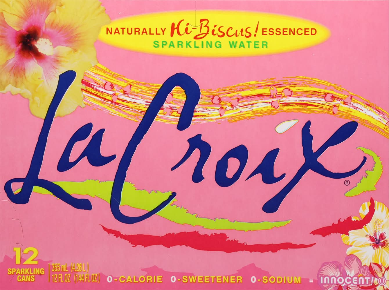 Sparkling Water, Hi-Biscus! • Brand: La croix • Pack size: 12 • kosher, • Lacroix Beverages,Inc., 26901 Industrial Blvd.,Hayward,CA,94545 • Packaging: Reusable