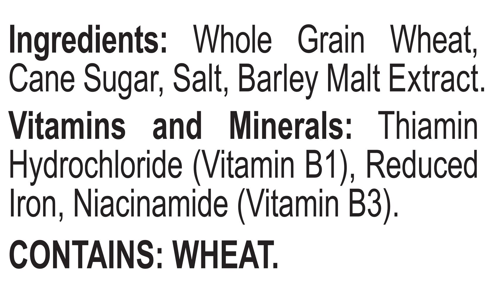 Ingredients: Whole Wheat, Barley Malt Extract, Cane Sugar, Salt, Iron, Niacin (B3), Thiamin Hydrochloride (B1). Contains: Wheat