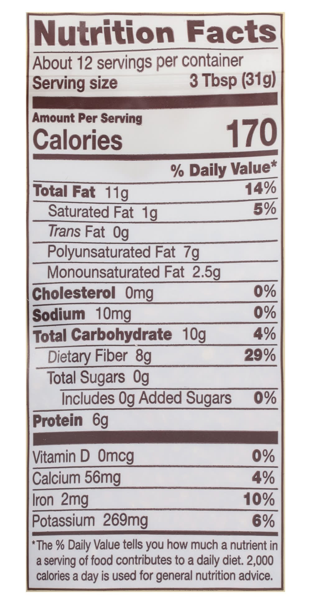 Ingredients: Whole Flaxseed Contains: Tree Nuts, Soybeans