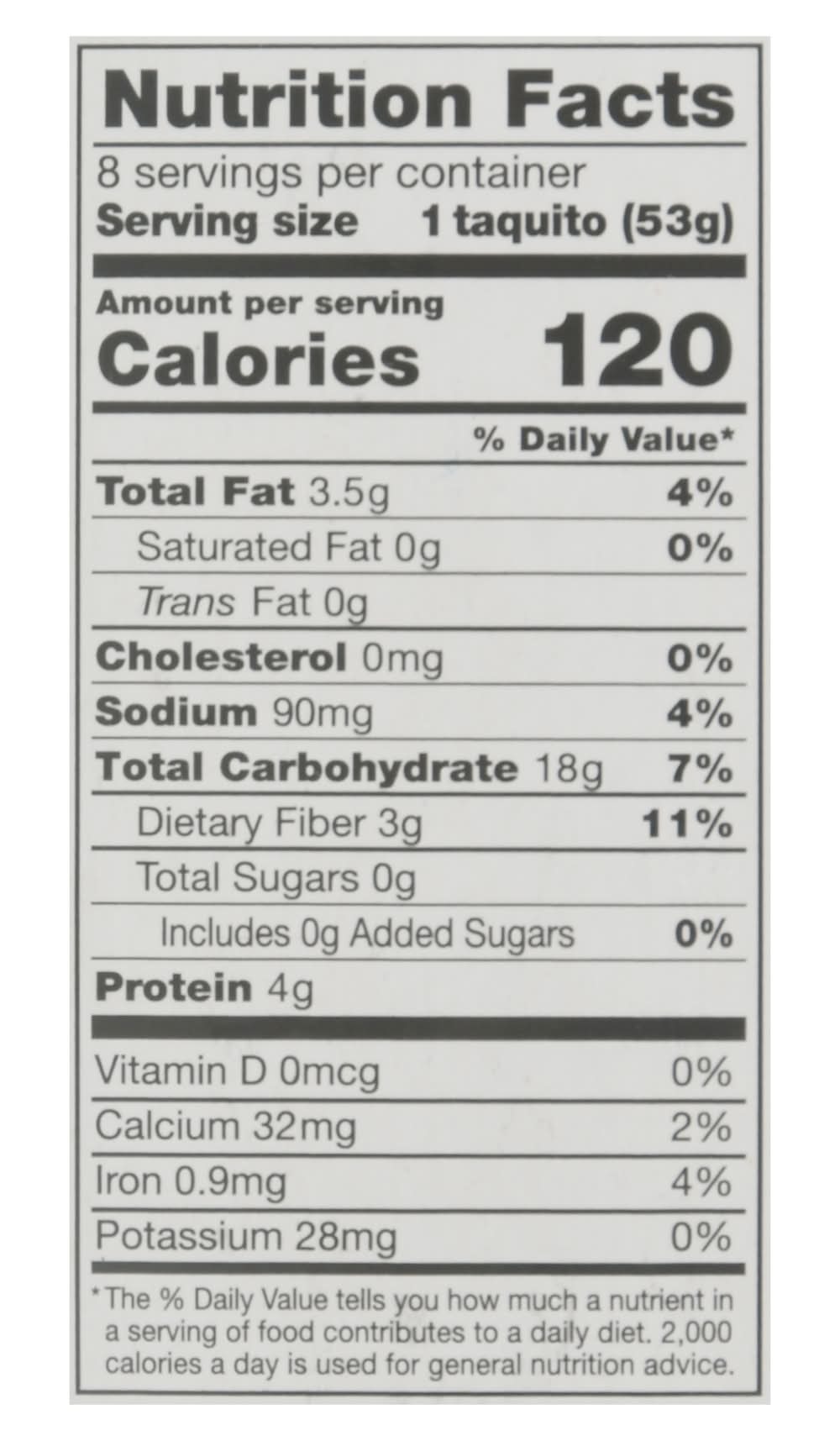 Directions for use: Microwave: Microwave: Wrap taquitos in paper towel. 1 taquito: 30 sec. 2 taquitos: 60 sec. 4 taquitos: 1 min. 30 sec. Skillet: Heat skillet to med/high. Place taquitos onto skillet. Turn every few minutes until crispy brown. Cooking Instructions: Do not thaw before cooking for best results use oven or air fryer. Cooking times may vary. Cook to a minimum internal temperature of 160 degrees F (71 degrees C). Caution: filling may be hot! Keep frozen. Storage recommendation: Keep frozen.