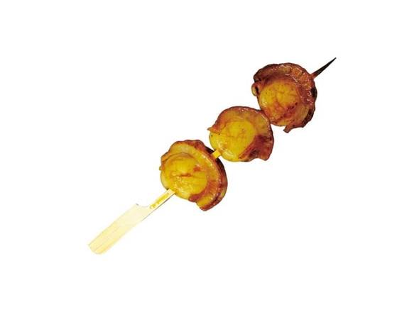 Tender baby scallops skewered and grilled to perfection, offering a delightful taste of the sea.