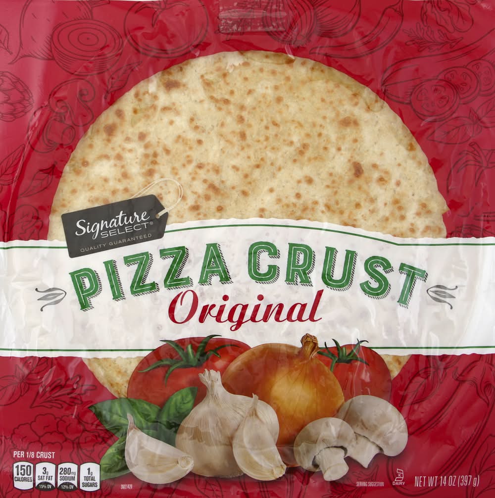 Per 1/8 Crust: 150 calories; 3 g sat fat (15% DV); 280 mg sodium (12% DV); 1 g total sugars. Quality guaranteed. Our signature is our promise. Signature Select is your assurance of great quality products at the best value every day - from delicious frozen entrees and freshly baked French bread to home essentials. We wouldn't put our signature on anything else. Quality and satisfaction guaranteed, or your money back. Our Promise: Quality & satisfaction 100% guaranteed or your money back. www.betterlivingbrandsLLC.com SmartLabel: Scan for more food information. Number of servings: 8